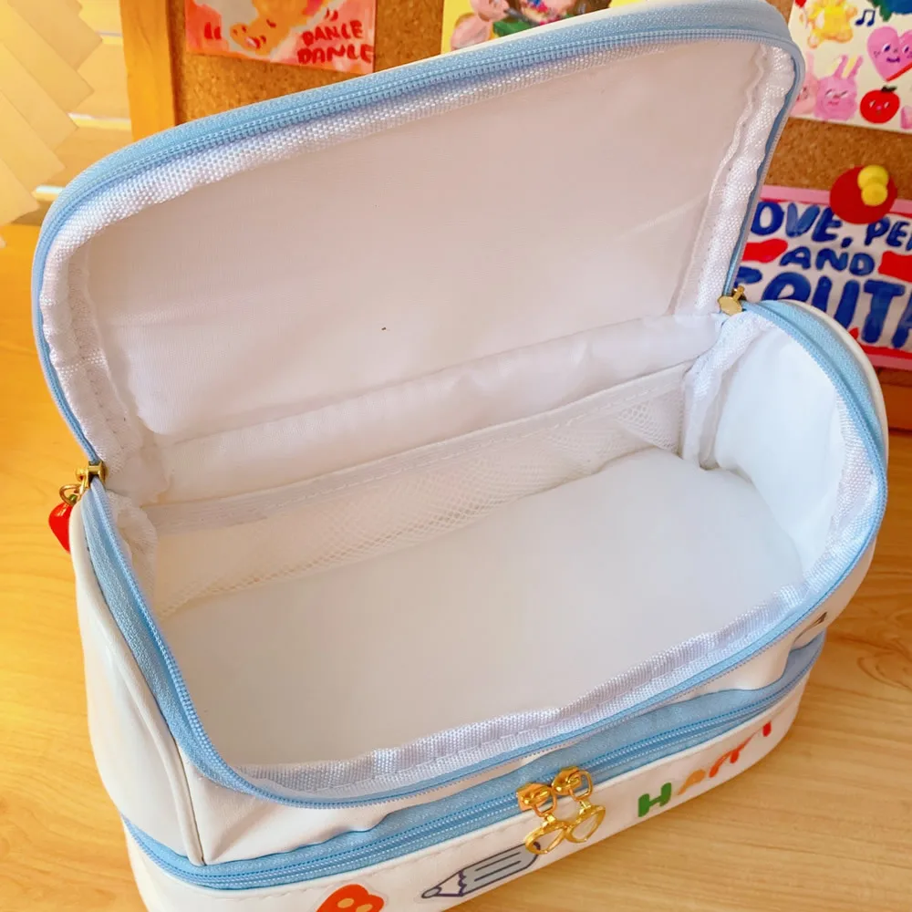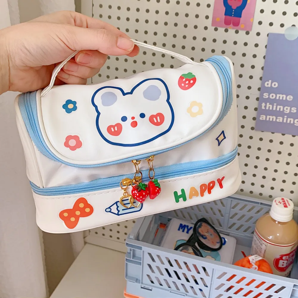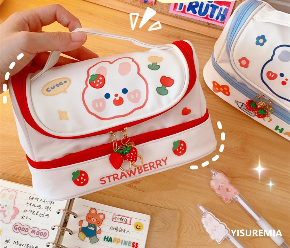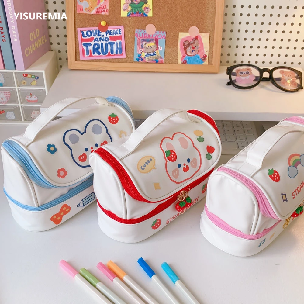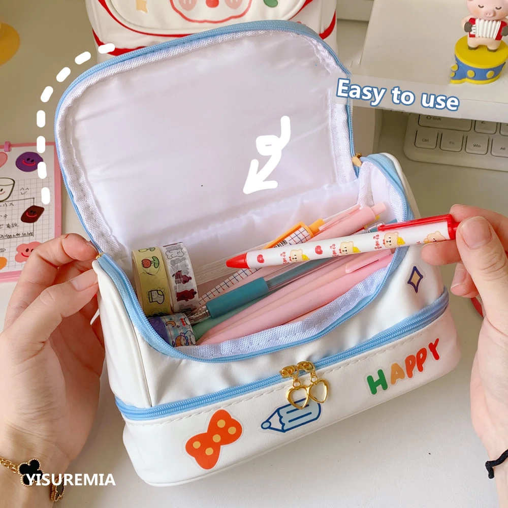 New Kawaii Pencil Bag Pen Case 2 Layer High Capacity Pencils Pouch Free 1PC DIY Sticker School Stationery Girl Gift