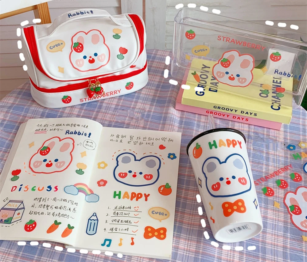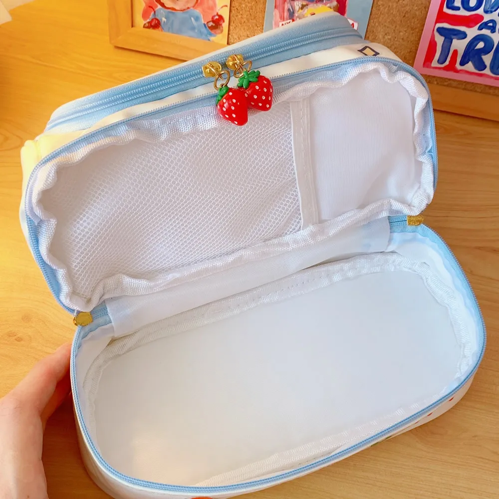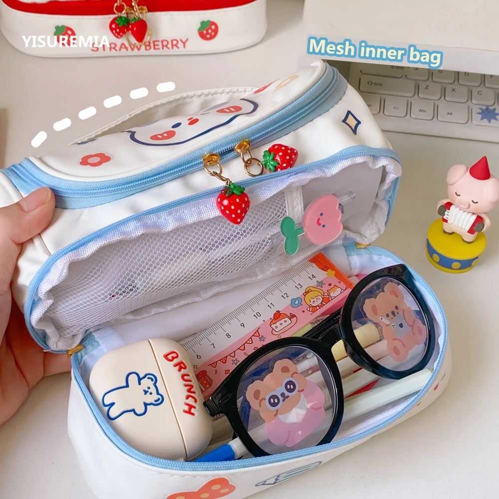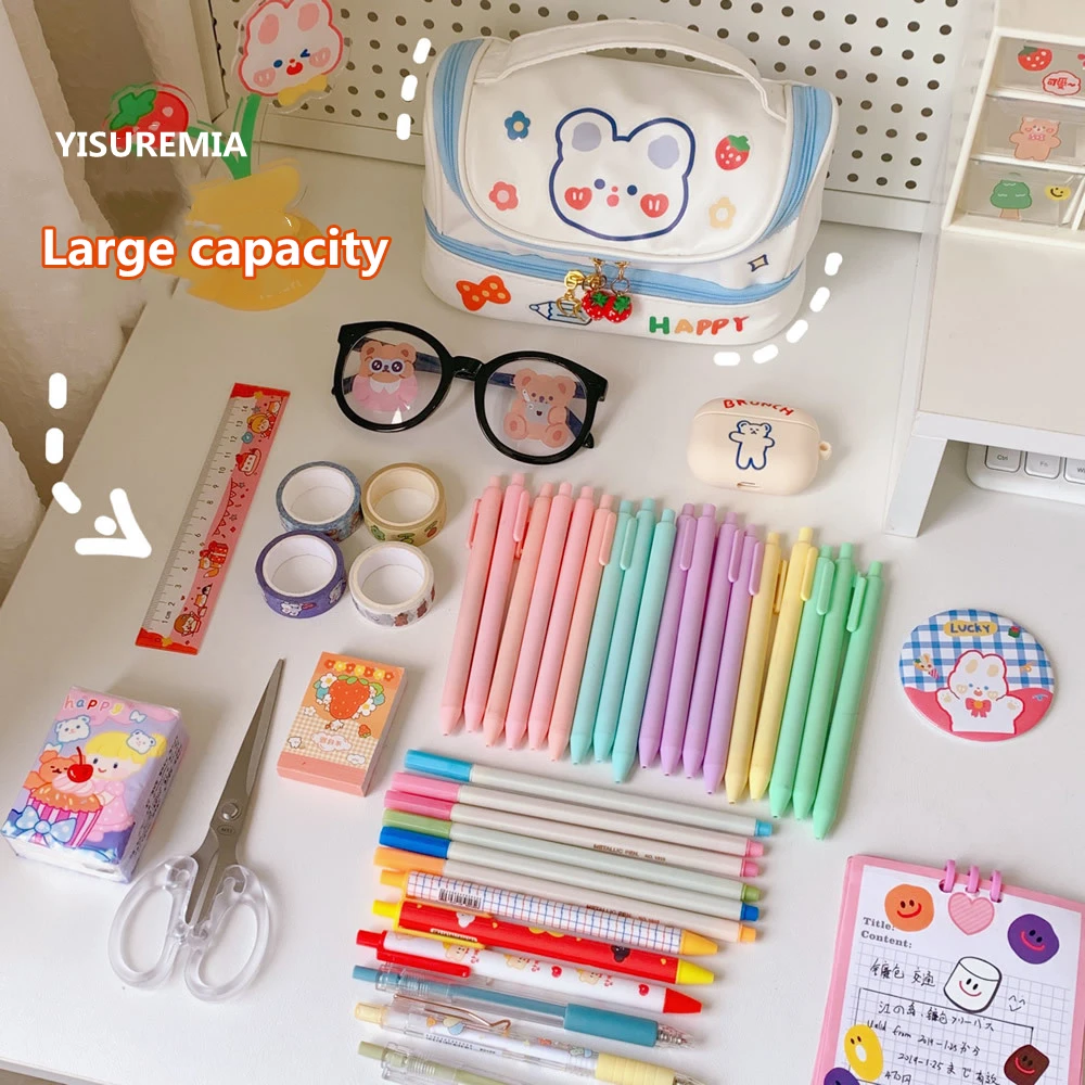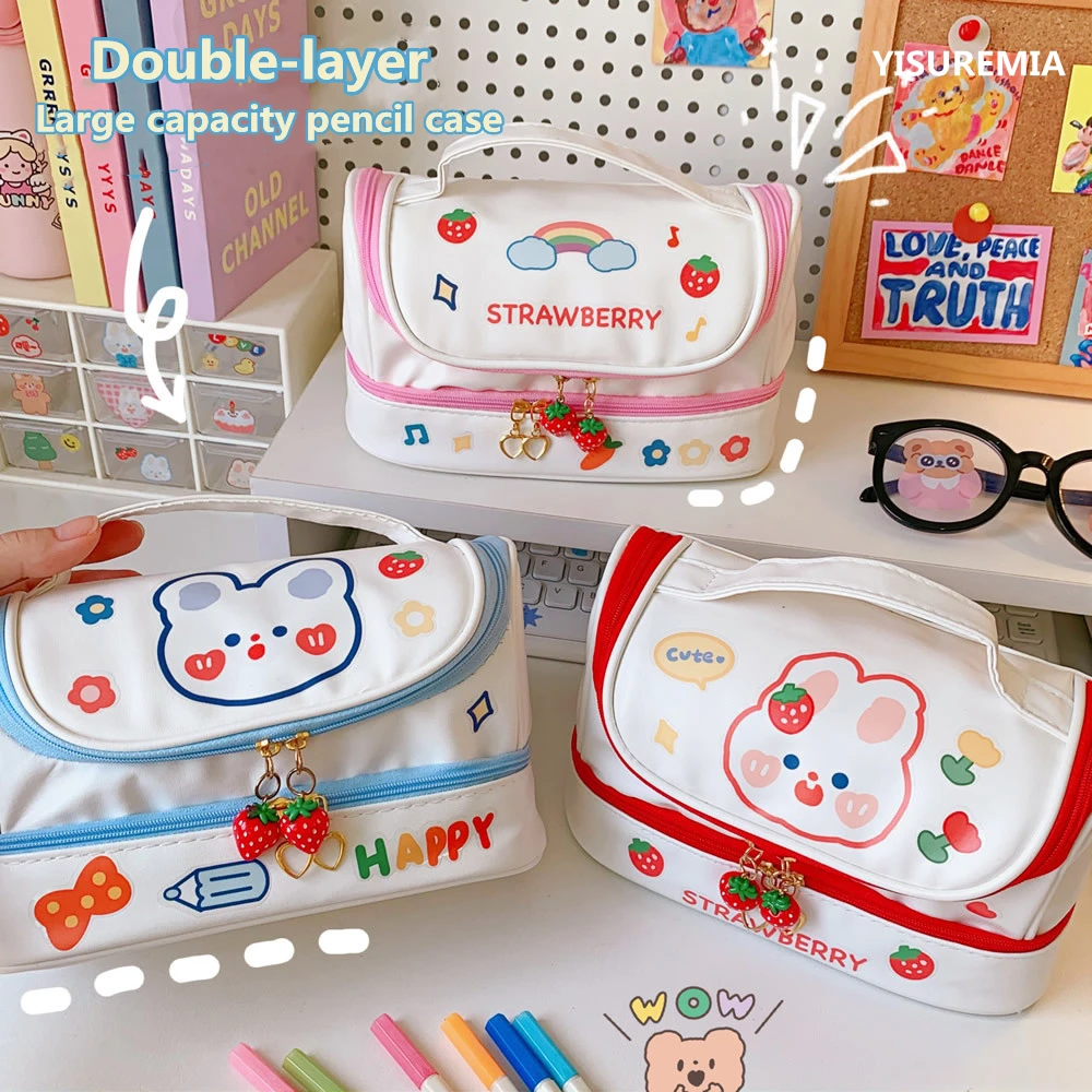 New Kawaii Pencil Bag Pen Case 2 Layer High Capacity Pencils Pouch Free 1PC DIY Sticker School Stationery Girl Gift
