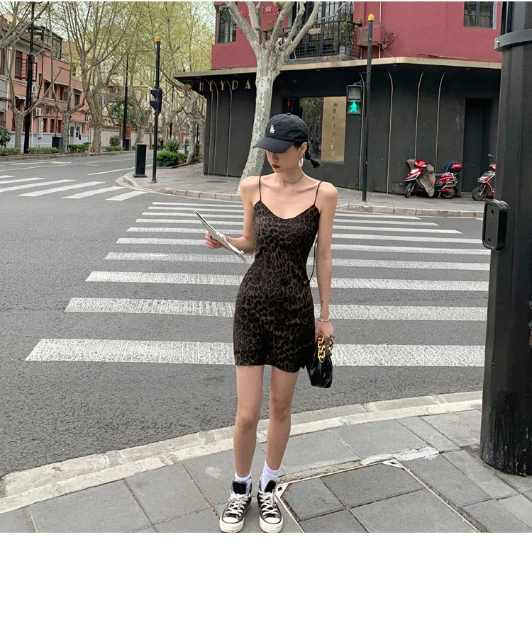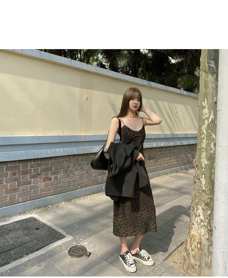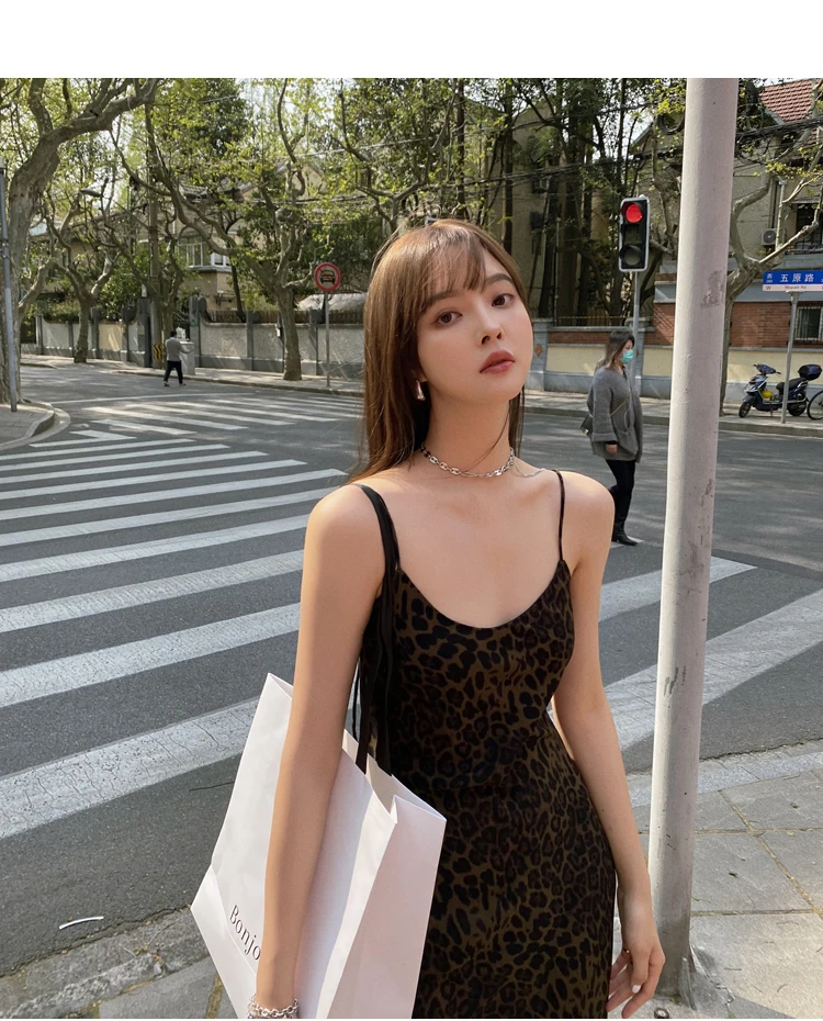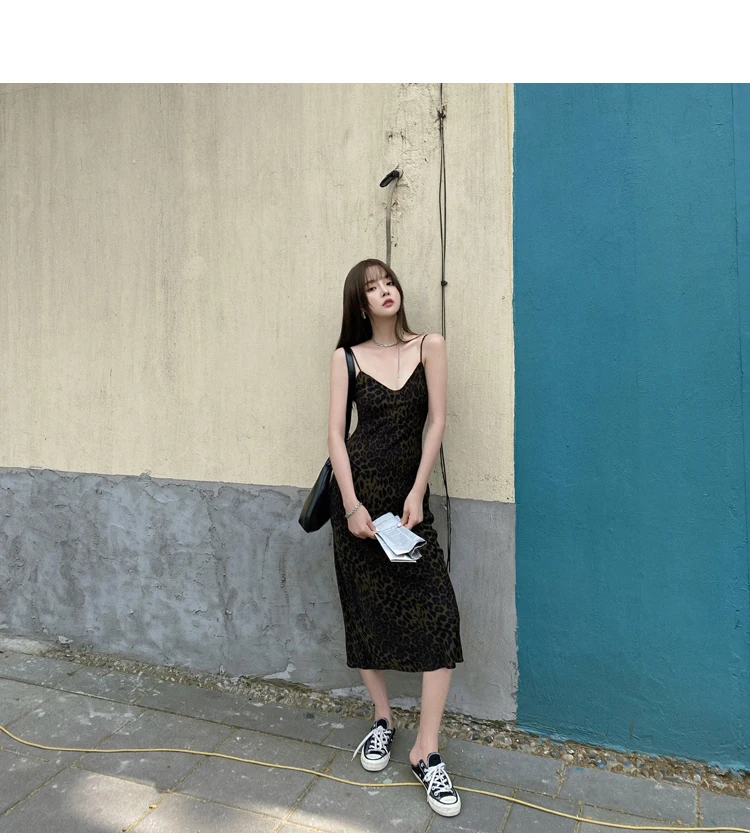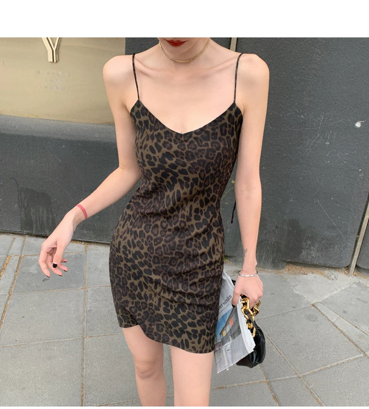 New Leopard Print Sling Maxi Dress Women Summer Elegant Backless Sleeveless Slip Long Dress Female Sexy Party Vestidos Dresses