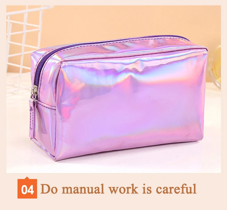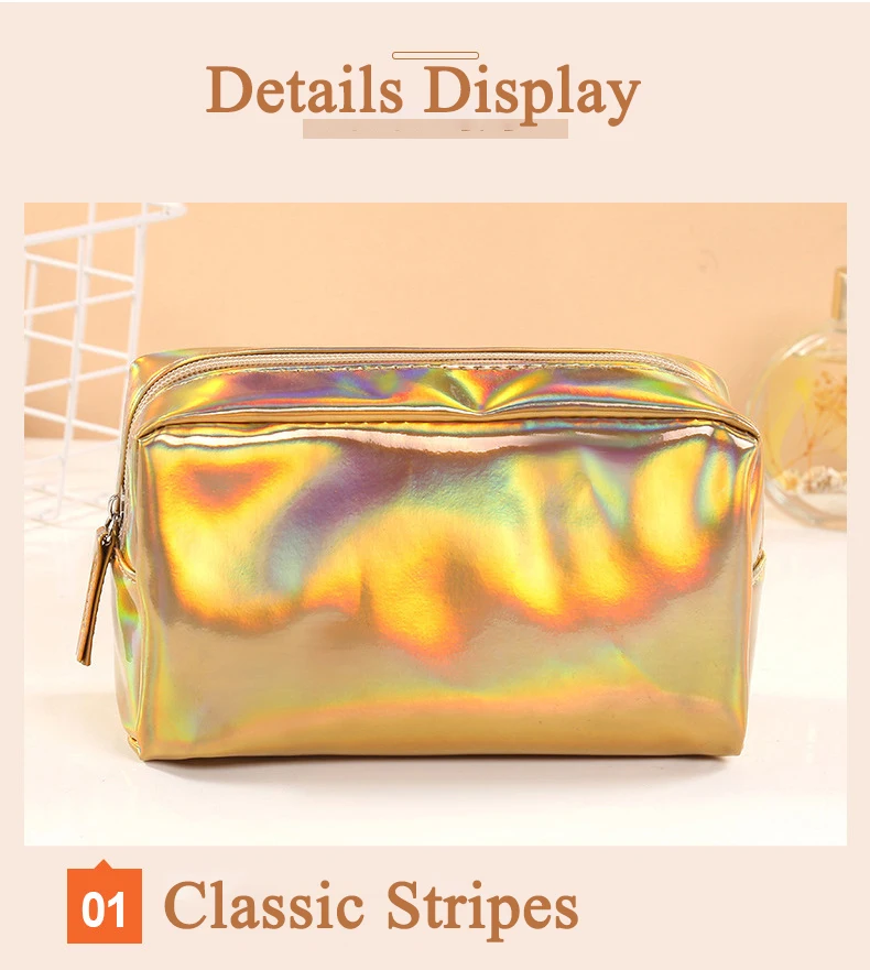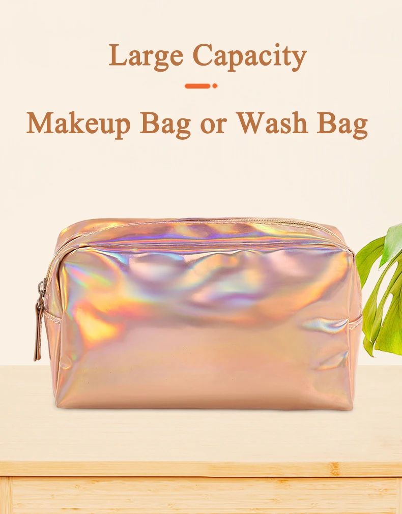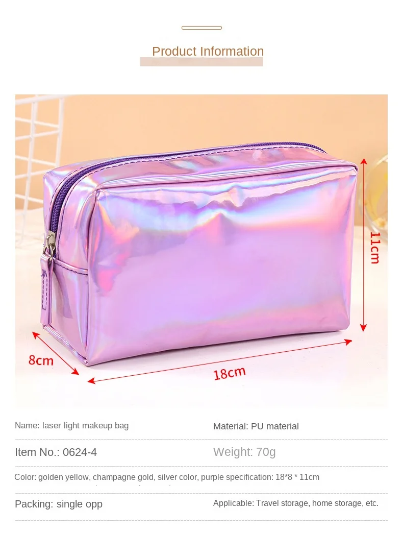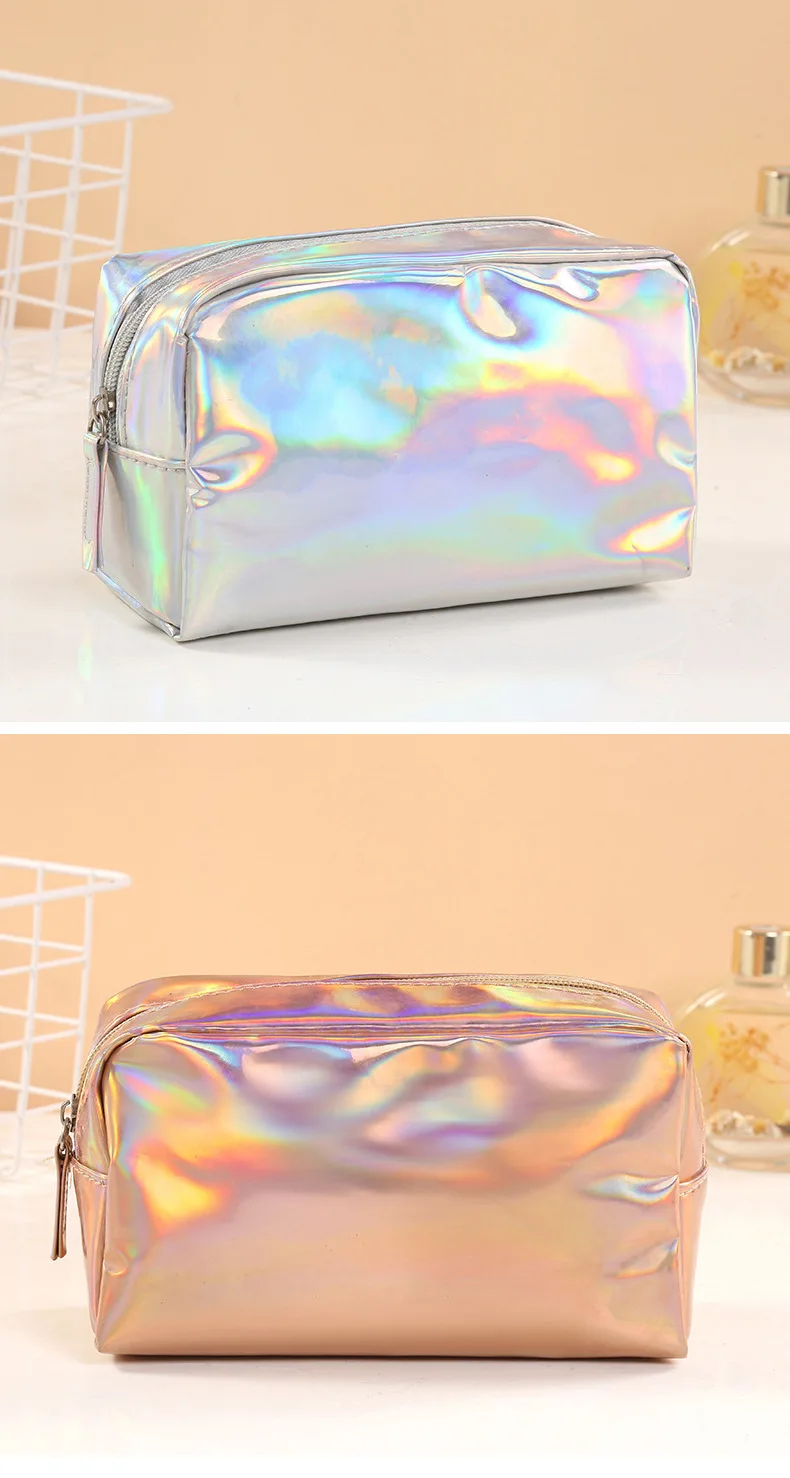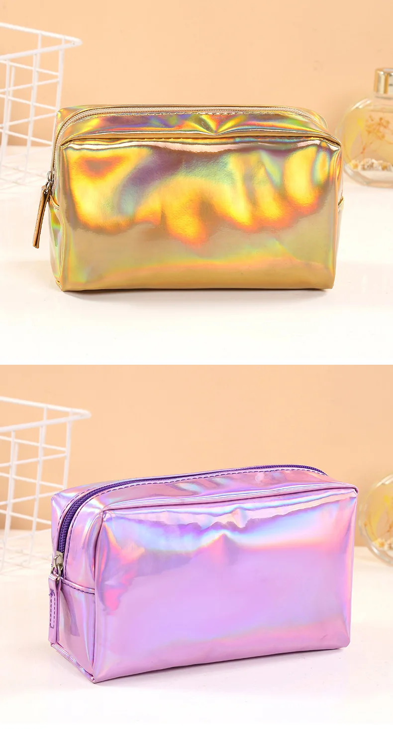 New Solid Color Laser Cosmetic Bag Ins Wind Portable Wash Storage Bag Makeup Gift Bag Makeup Pouch Travel Cosmetic Organizer