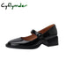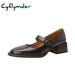 New Split Leather Mary Jane Women's Shoes Buckle Shallow Heel Pumps Spring/Autumn Square Toe Shoes Woman Zapatos De Mujer