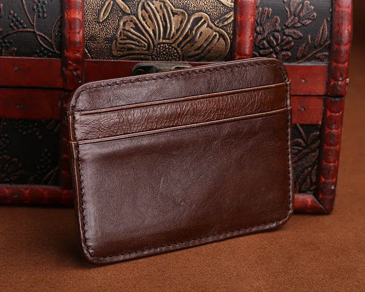 Vintage Genuine Leather Mini Wallet Men's Credit Card Holder Slim Clutch Money Bag Small Coin Purse For Women
