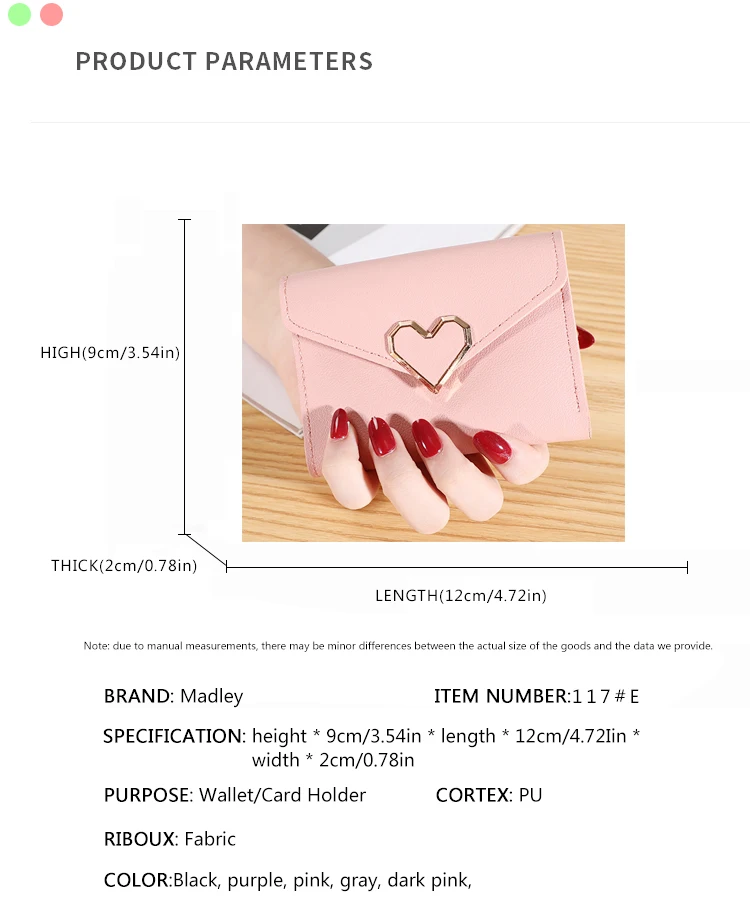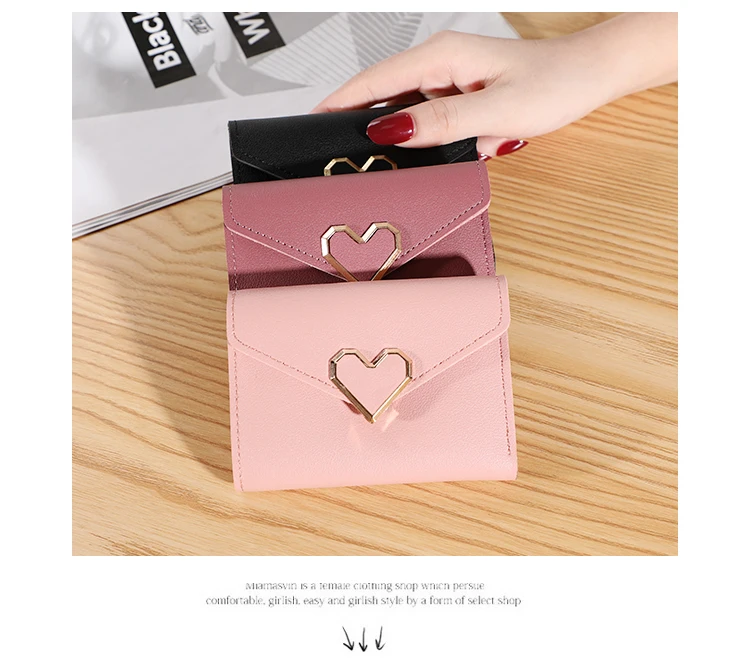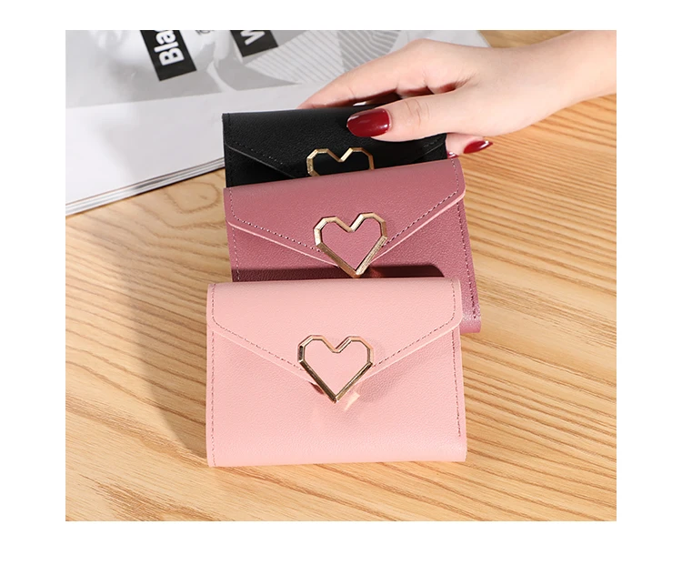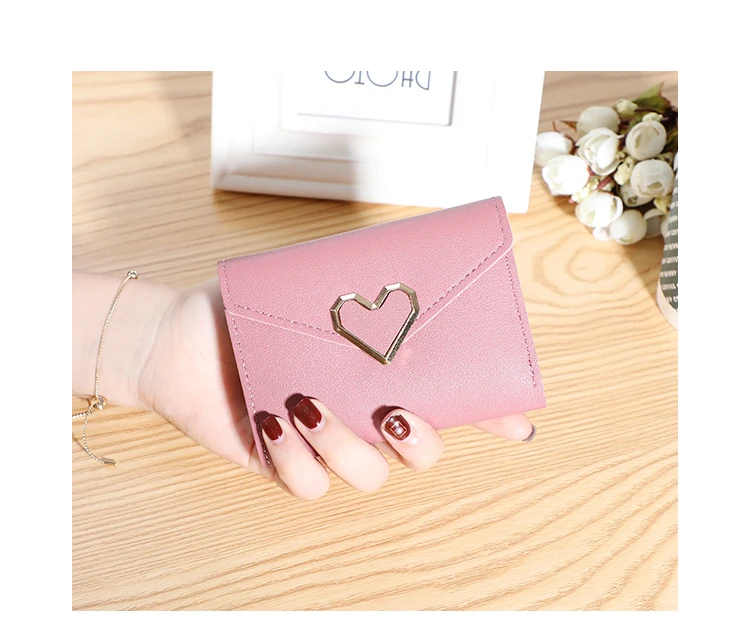 Personalized Fashion Small Wallet Short Ultra Thin Cute Coin Purse Wallet Heart Shaped Buckle Card Holder