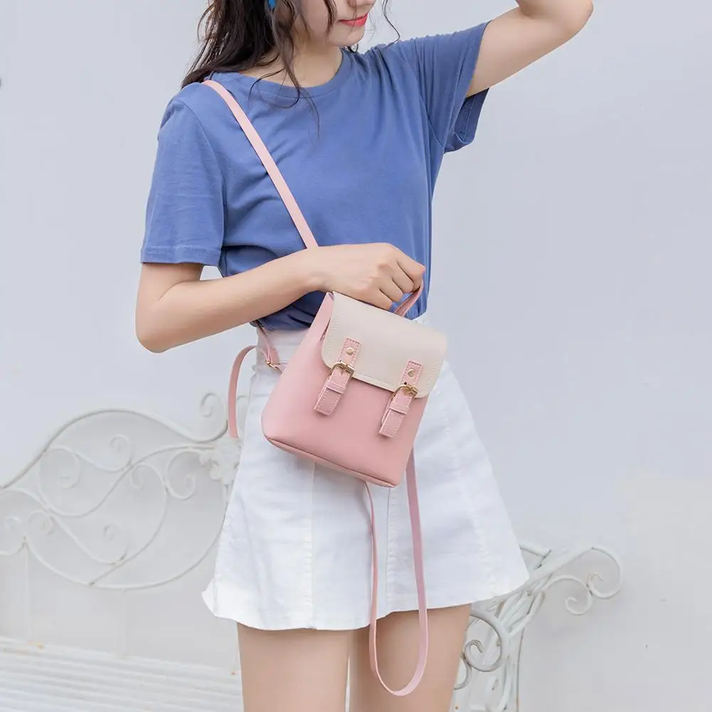 PU Leather Fashion Splicing Flap Women Shoulder Bags Clasp Multi-Function Casual Backpack for Teenage Girls Mini Hit Color School Bags