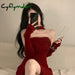 Red Knitted Y2k Dress Women's Sleeveless Halter Split Sexy Solid Stretch Slim Fit Backless Retro Women's Party Dress Elegant