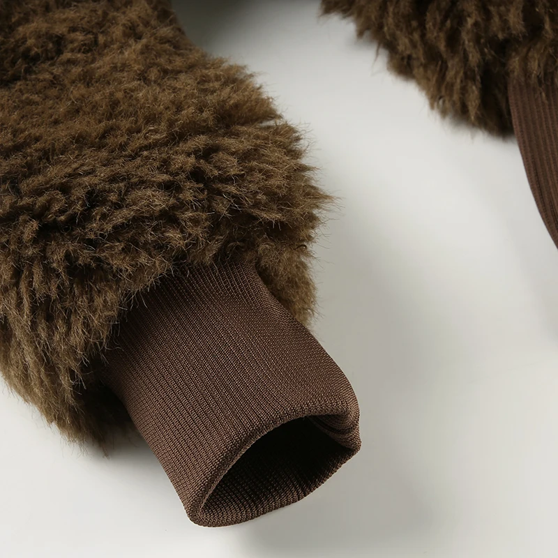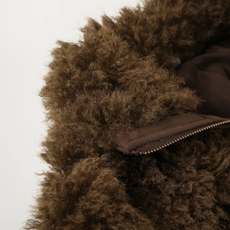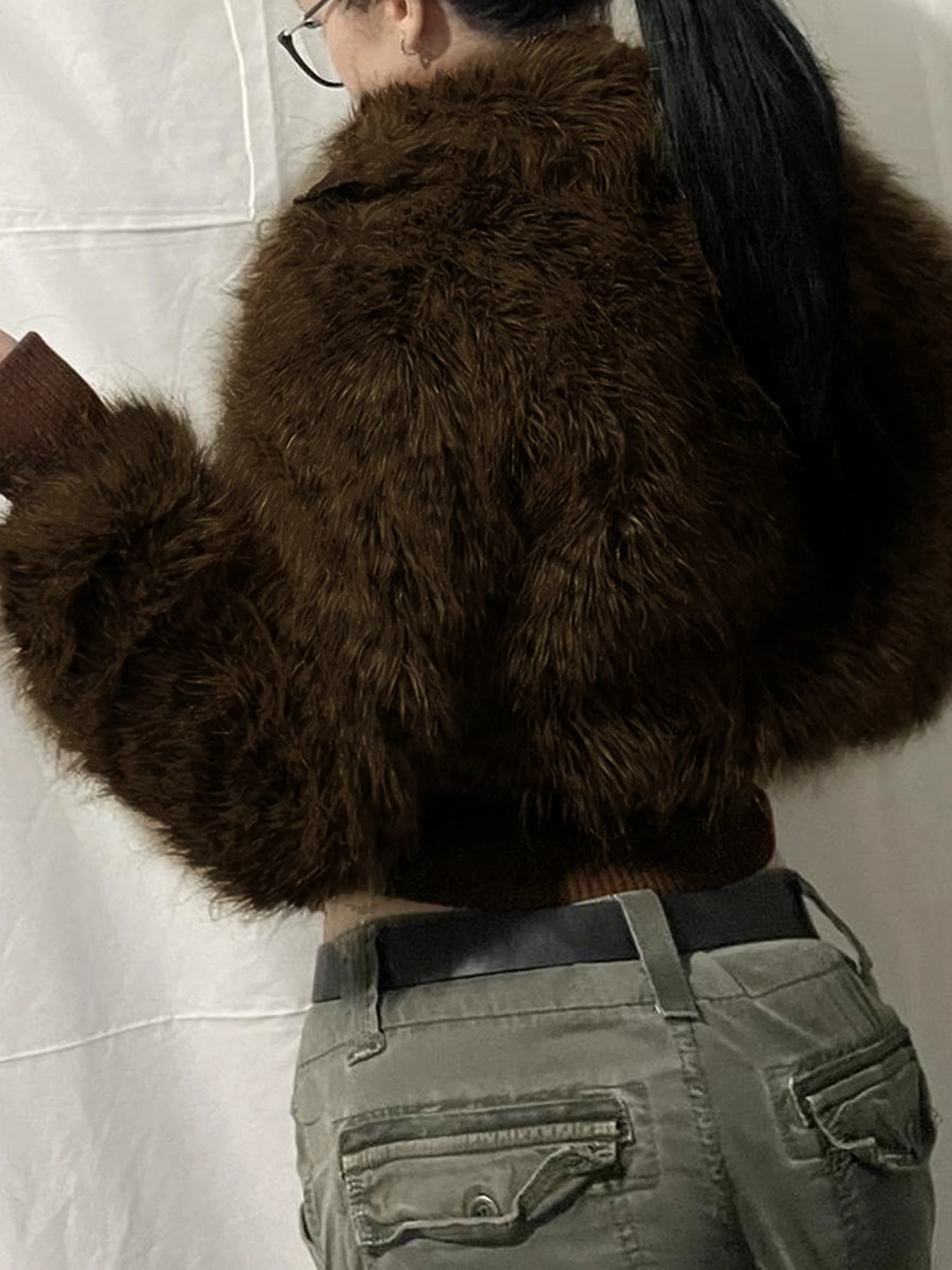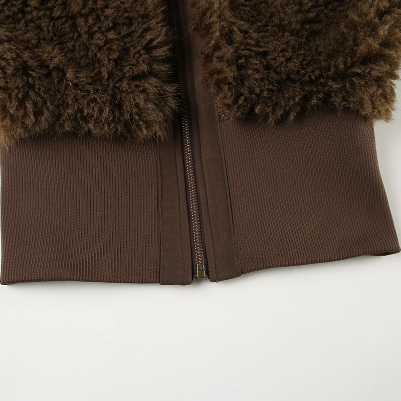 Retro Brown Fur Coat Y2K Turtleneck Zipper Jacket Vintage Casual Winter Thick Outwear Streetwear Women Clothes New