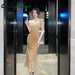 Sexy Sequins Midi Dresses for Women French Style Velvet Sleeveless Backless Slim Female Clothes Elegant Party Evening Dress