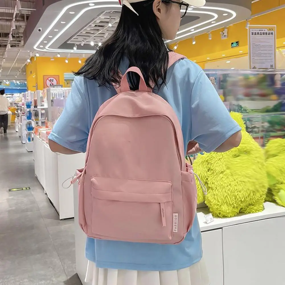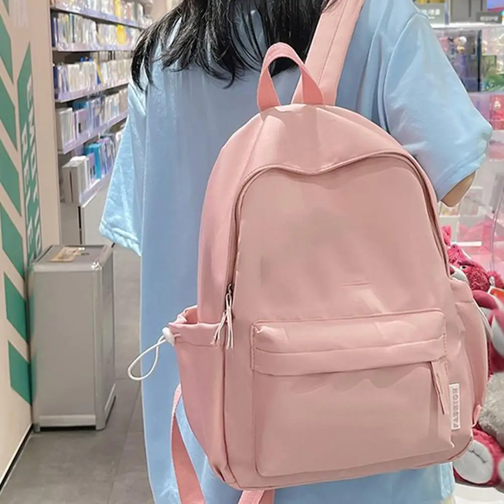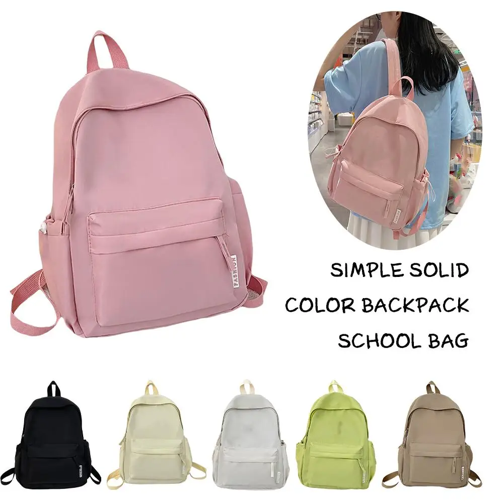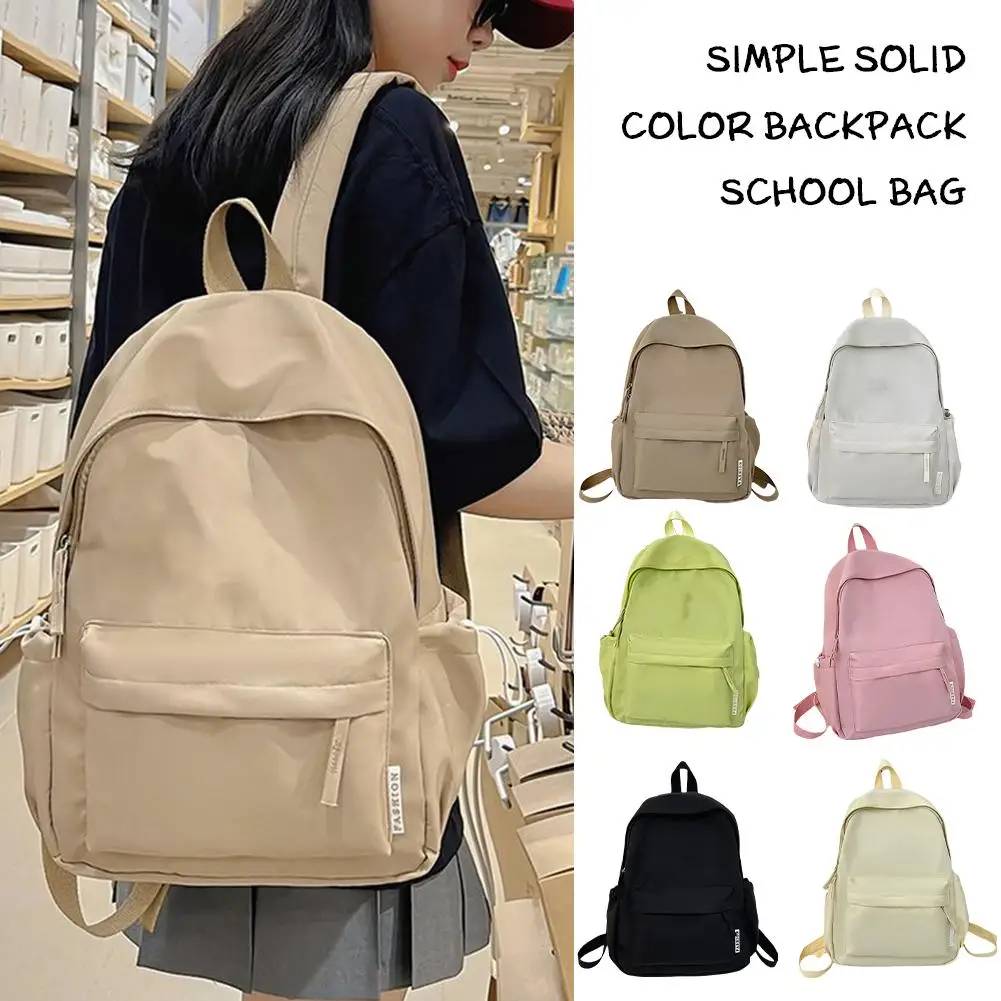 BACK TO SCHOOL Simple Solid Color Backpack Women School Bags For Teenager Girls Bookbag Lady Travel Backbag Ins Small Fresh Cute Shoulder Bag