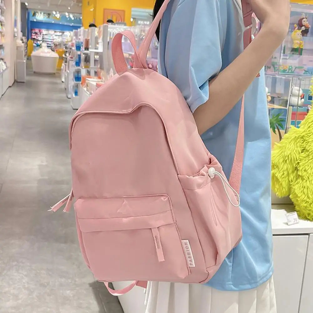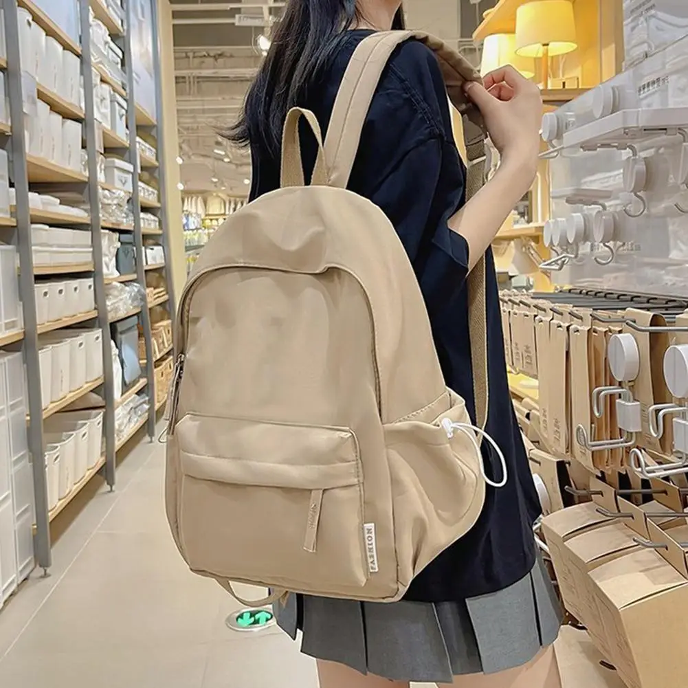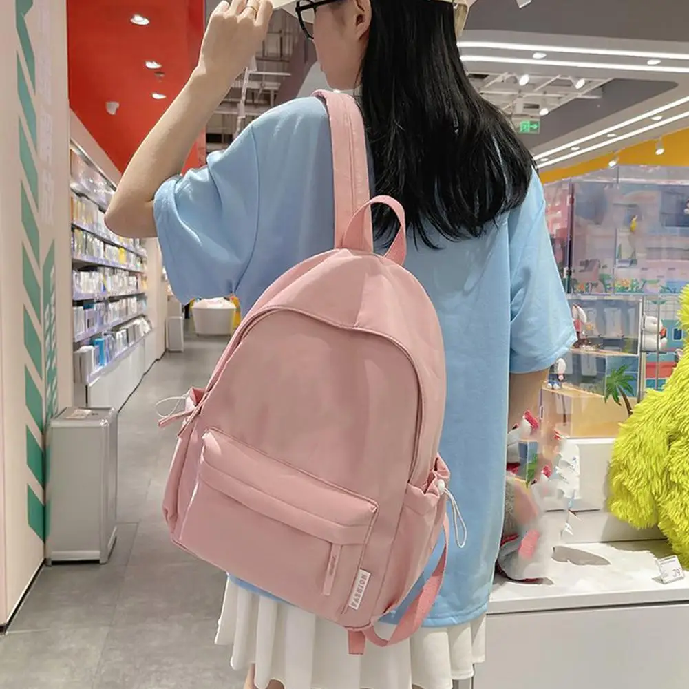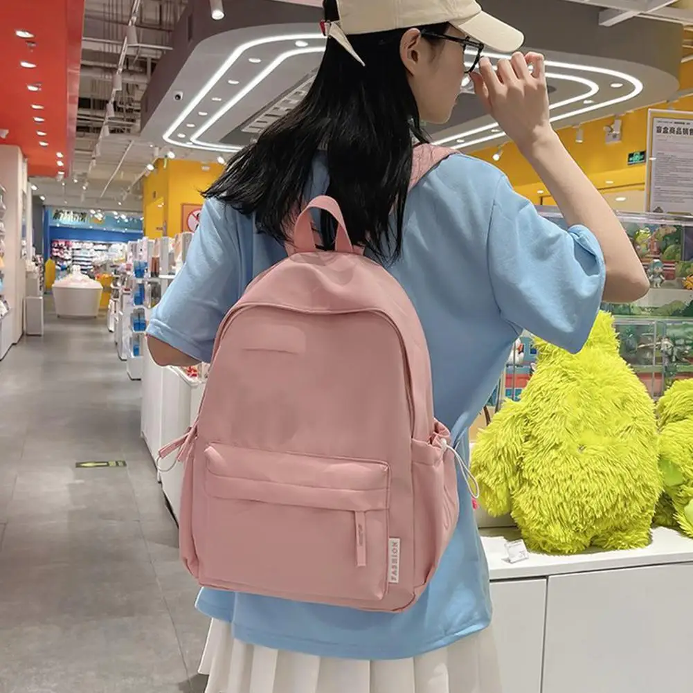 BACK TO SCHOOL Simple Solid Color Backpack Women School Bags For Teenager Girls Bookbag Lady Travel Backbag Ins Small Fresh Cute Shoulder Bag