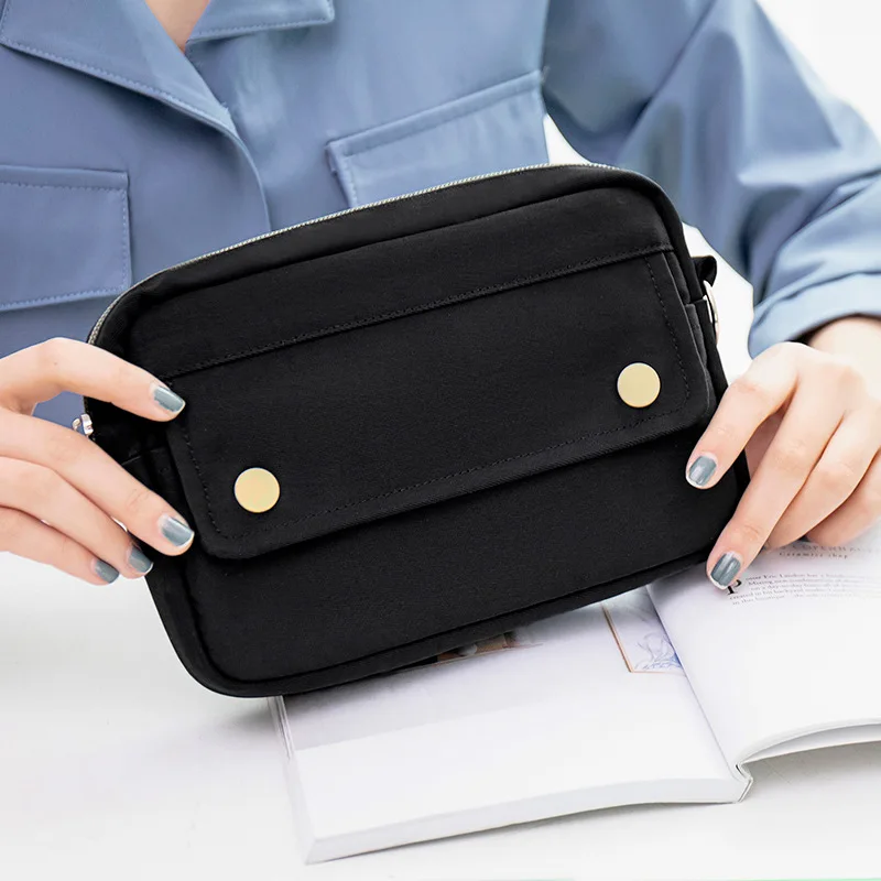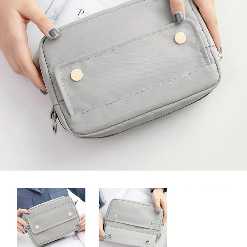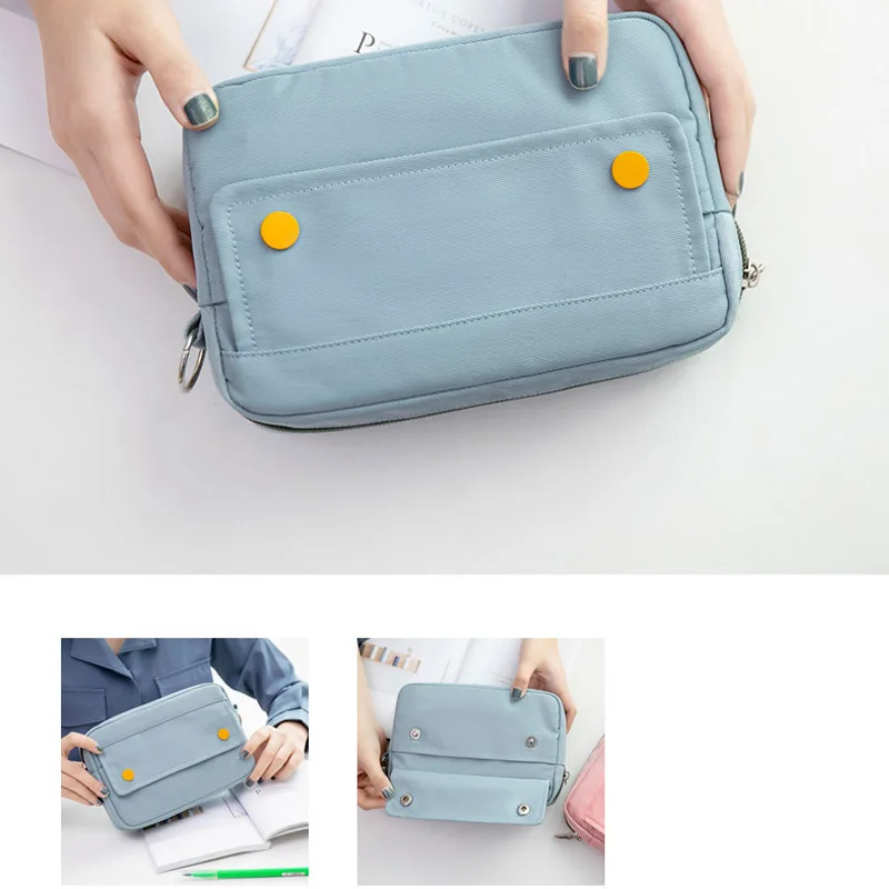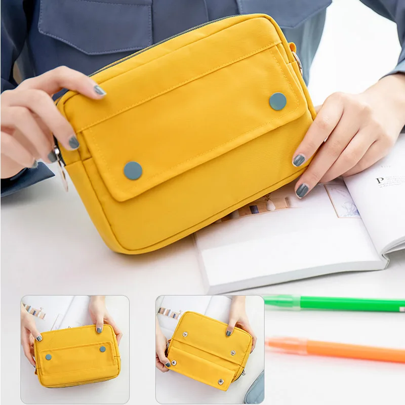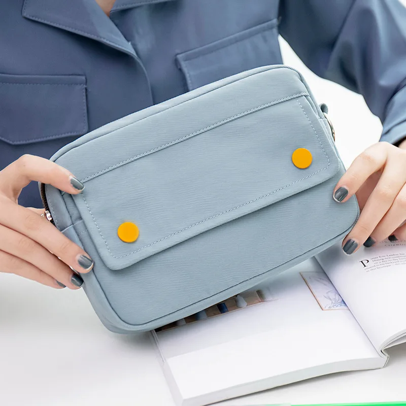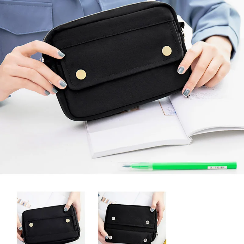 BACK TO SCHOOL Simple Solid Color Dark Button Twill Waterproof Polyester Super Large Capacity Multifunctional Pencil Bag School Supplies