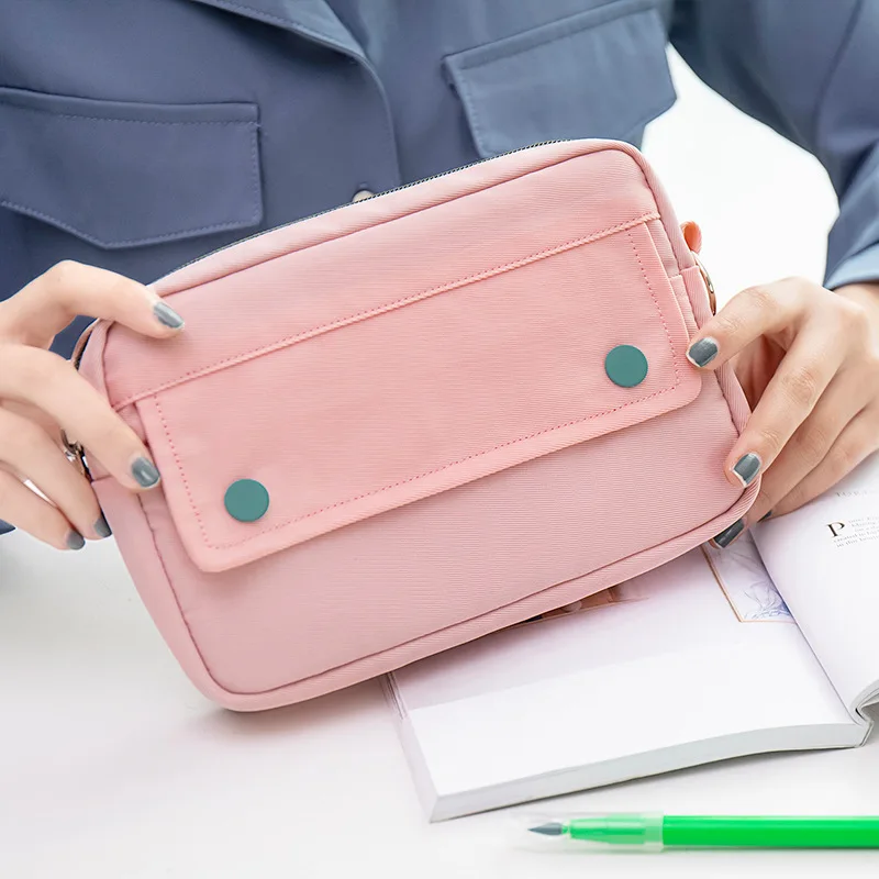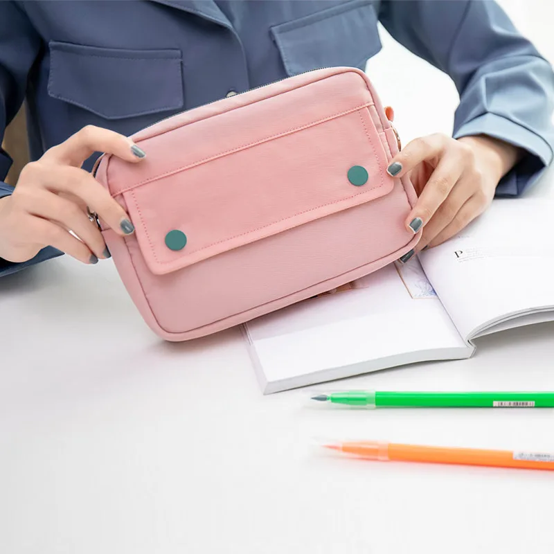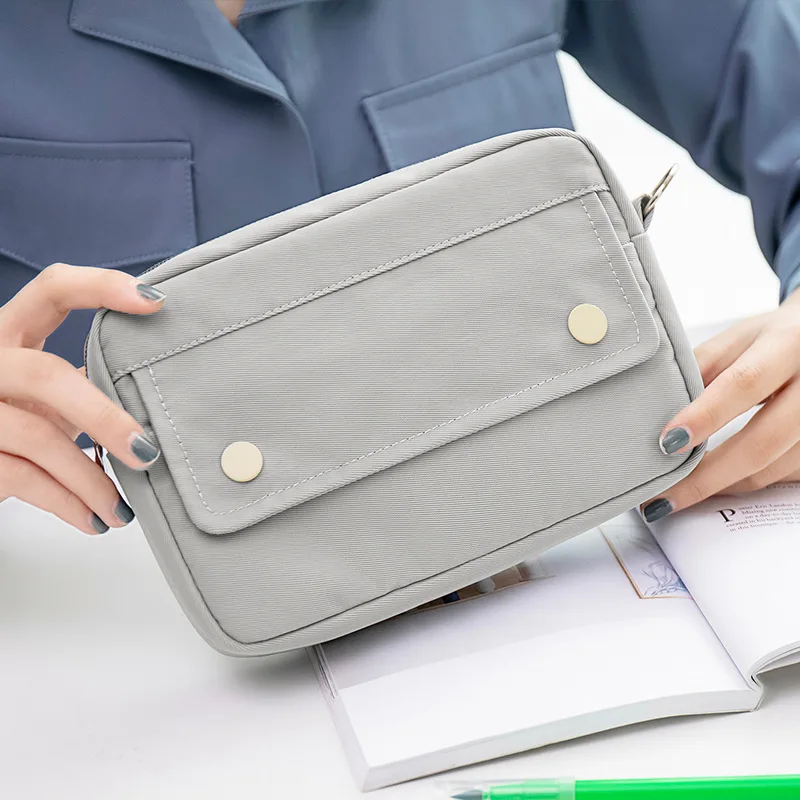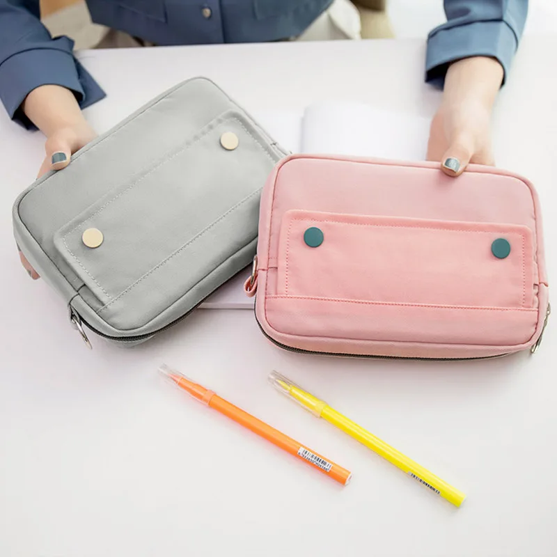 Simple Solid Color Dark Button Twill Waterproof Polyester Super Large Capacity Multifunctional Pencil Bag School Supplies