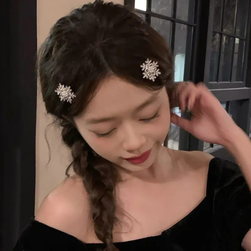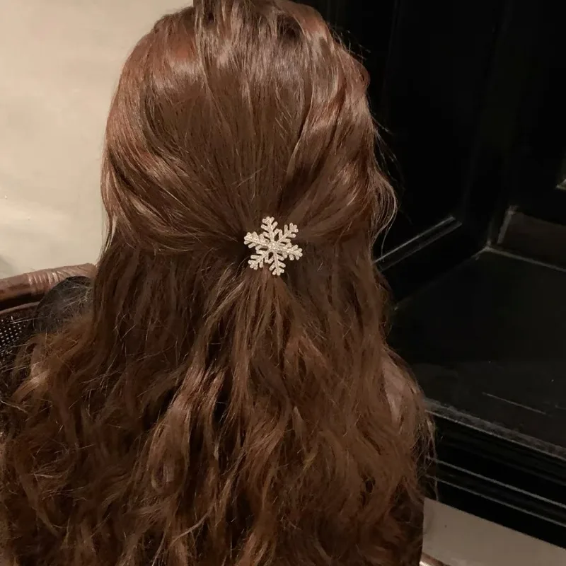 Snowflake BB Hair Clips Rhinestone Pearl Sliver Metal Sparkling Diamond Women Sweet Cute Duck Bill Hair Accessories Headwear