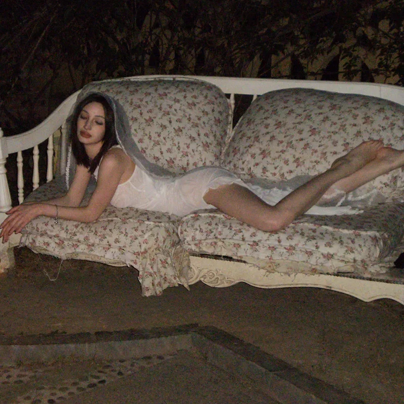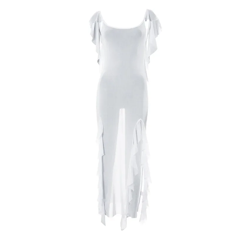 Solid Colour Mesh Slightly Transparent Sexy Dress Fashion Lacing Dresses Casual Square Neck Sleeveless Irregular Dress For Women