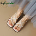 Split Leather Summer Sandals Square Toe Sandals Cowhide Roman Shoes Women Handmade Low Heel Shoes for Women Zapatos Mujer