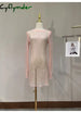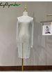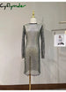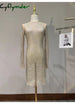 Spring and Summer New Shiny Full Diamond Slim Mid-length Dress See-through Hollow Evening Dress T-shirt Wild Bag Hip Skirt Women