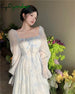 Spring and Summer Square Collar Blue Elegant French Retro Long-sleeved Princess Prom Dress Bohemian Temperament Floral Dresses