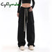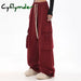 Streetwear Vintage Hip Hop Oversize Red Cargo Pants Women Drawstring Elastic Waist Loose Wide Leg Harajuku Casual Trousers