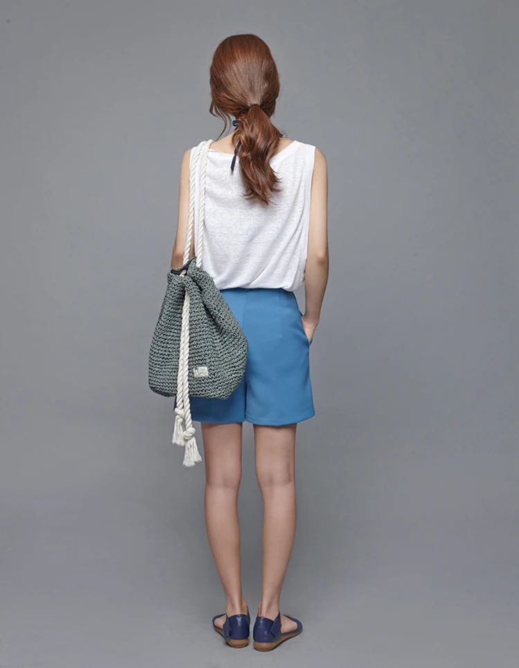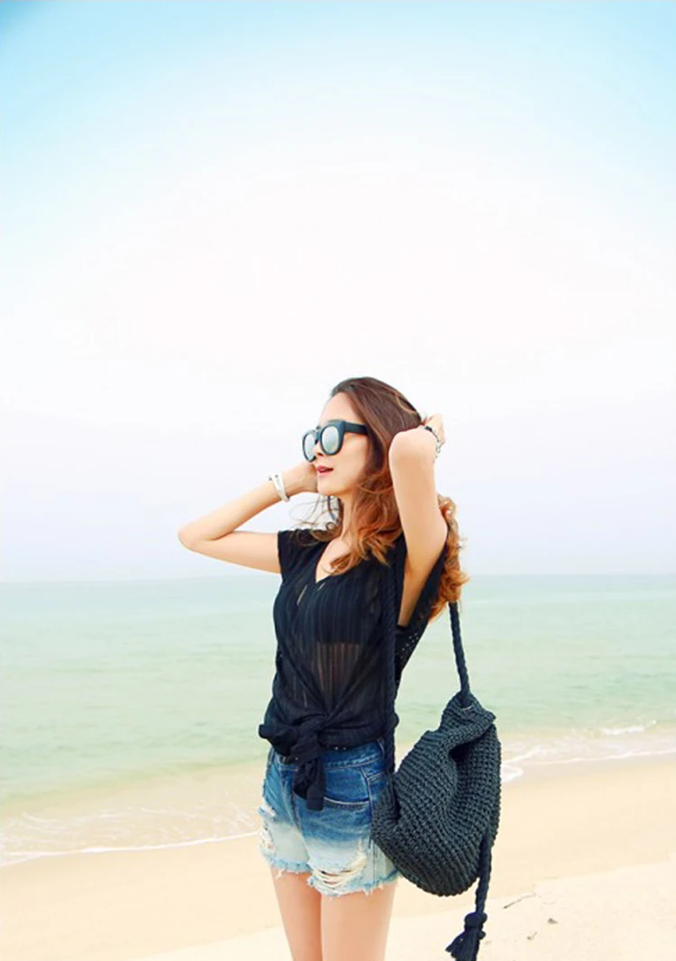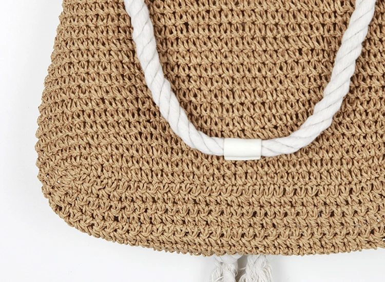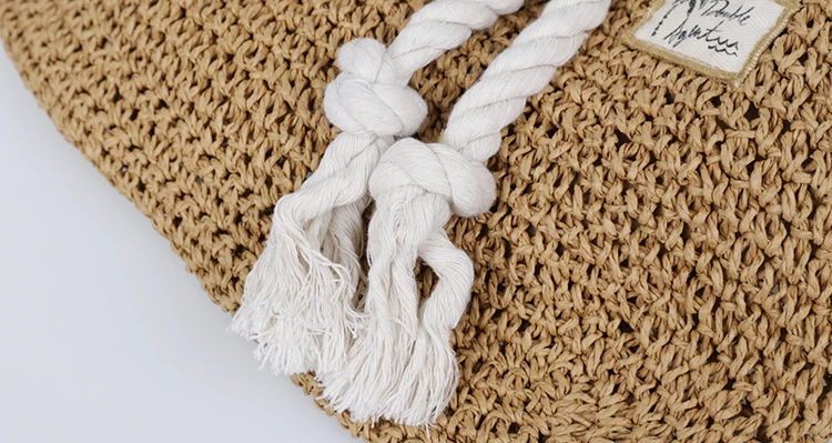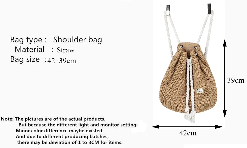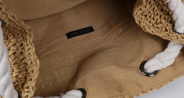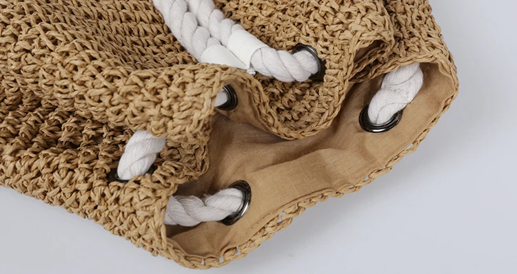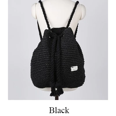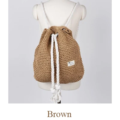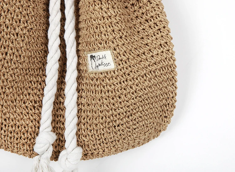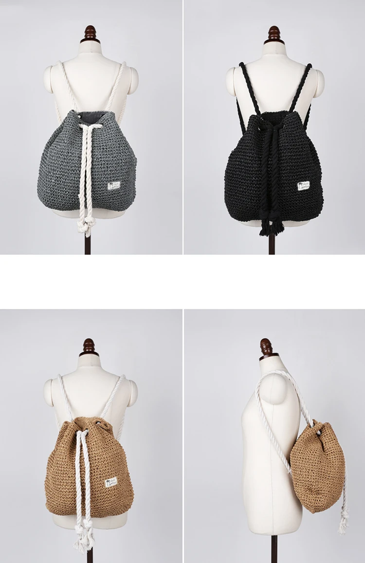 Summer Women Straw Backpack Handmade Beach Bag Drawstring Knapsack Knitted Crocheted Shoulder Bag Travel Bag