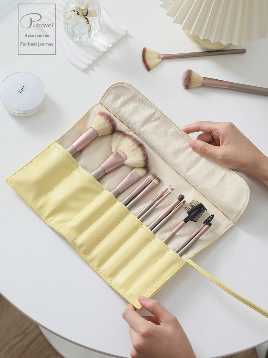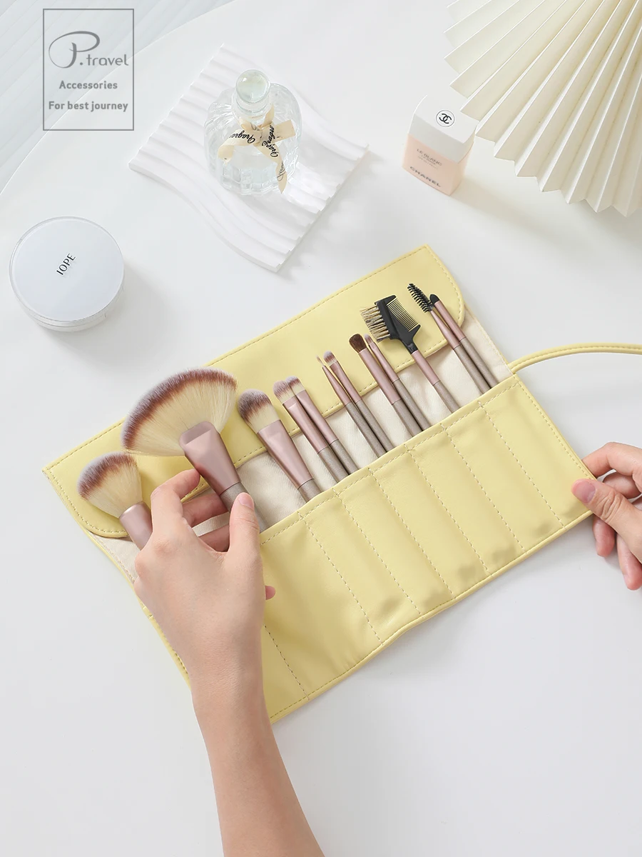 Travel Makeup Brushes Case Luxury Foldable Case Roll Bag Organizer Brushes Pouch Portable Makeup Eyebrow Contour Pencil Bag