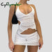 Two Piece Set Chic Women V Neck Halter Camis Tops Sexy Chest Wrap Backless Tie Up Bandage Crop Tops + Mini Pencil Skirt White
