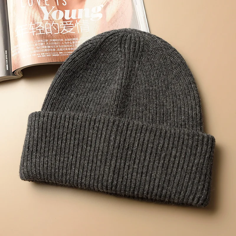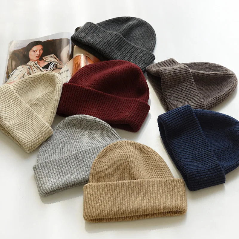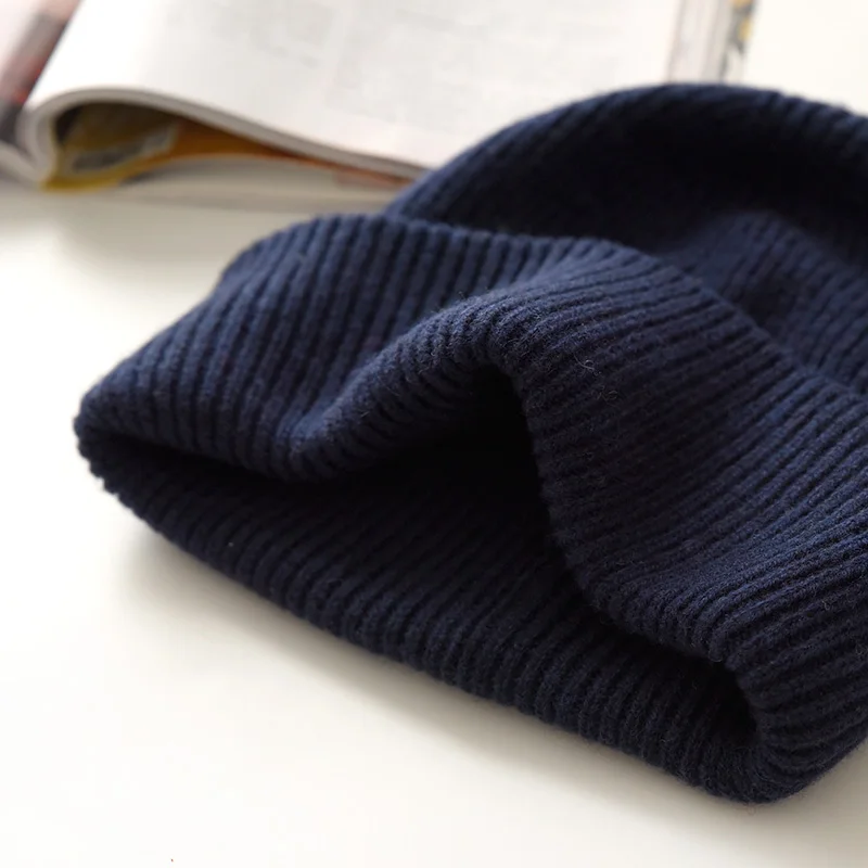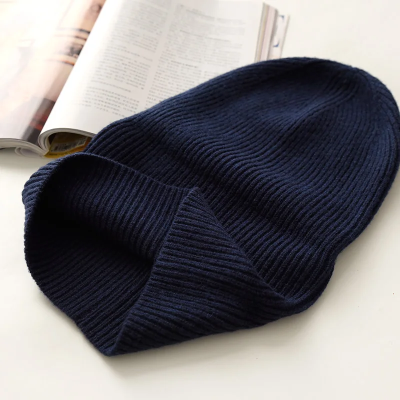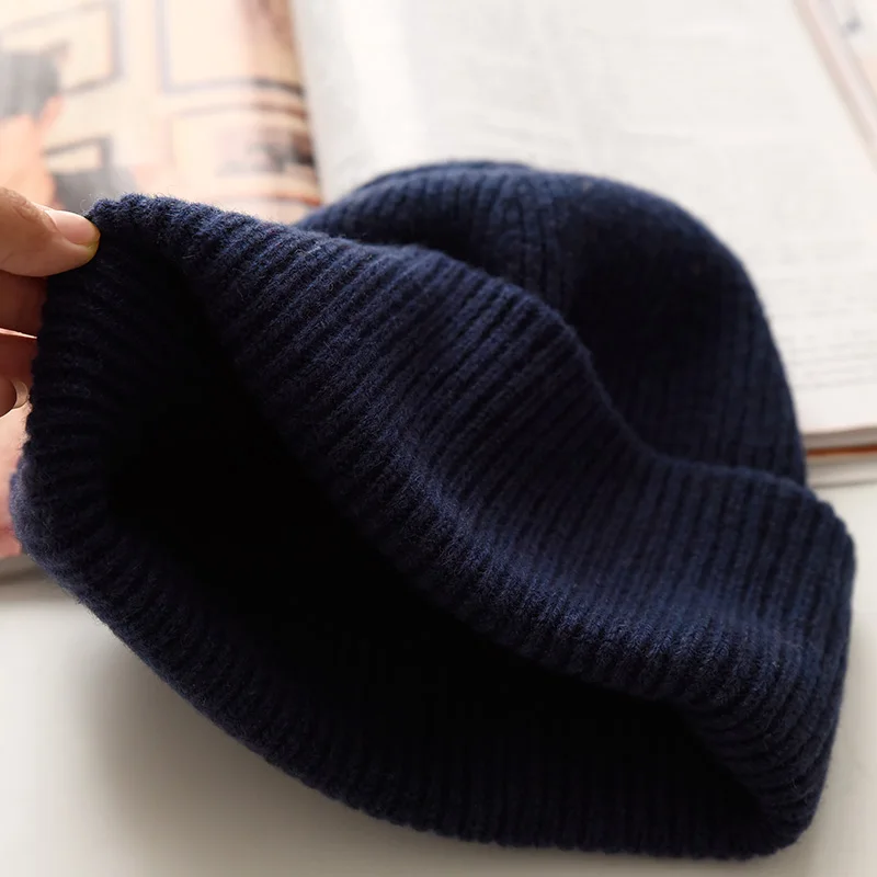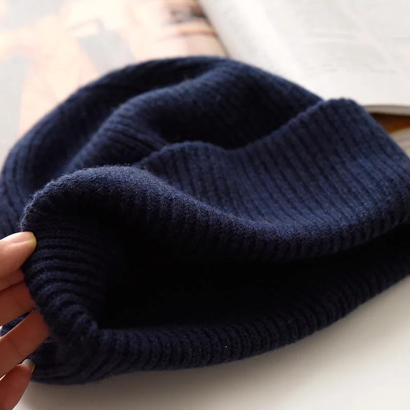 Unisex Large Size Winter Real Wool Knitted Beanies for Women Fashion Solid Warm Cashmere Wool Skullies Beanies Female Thick Hats