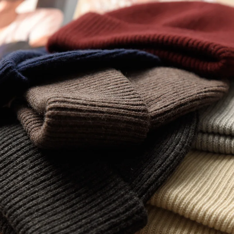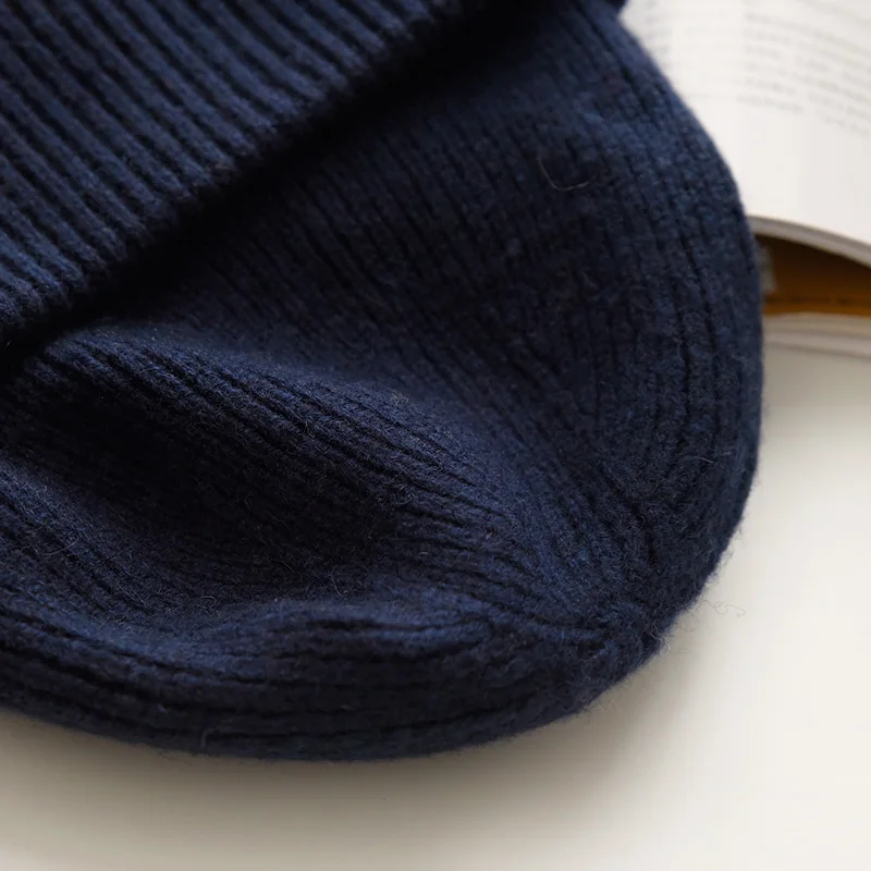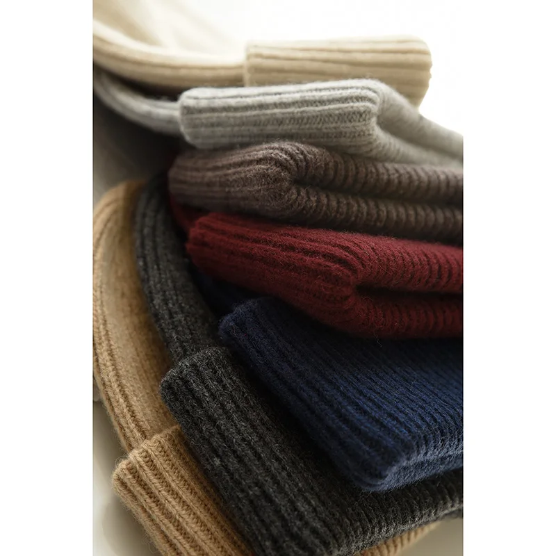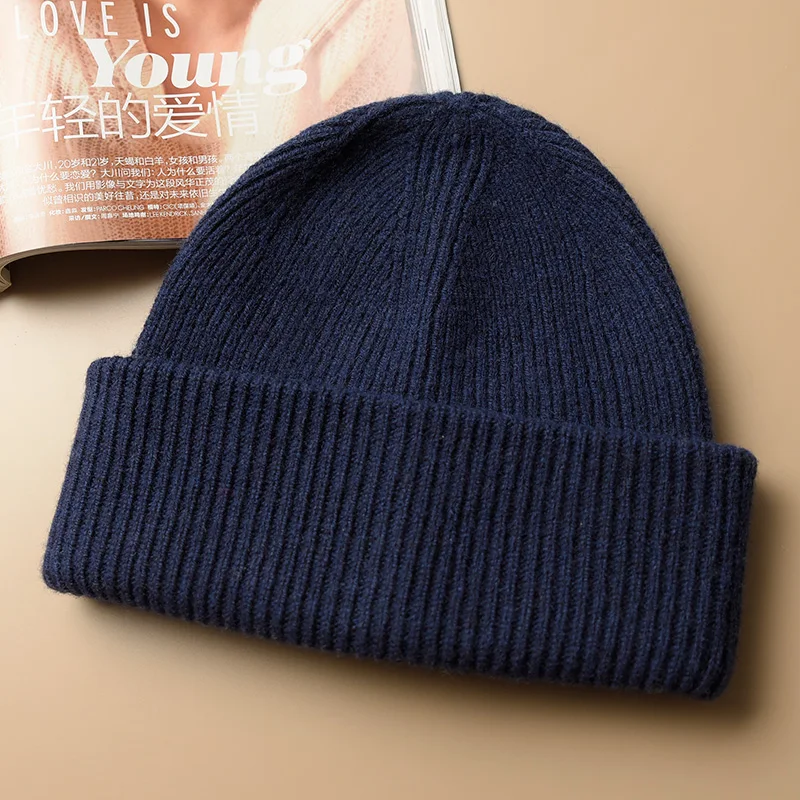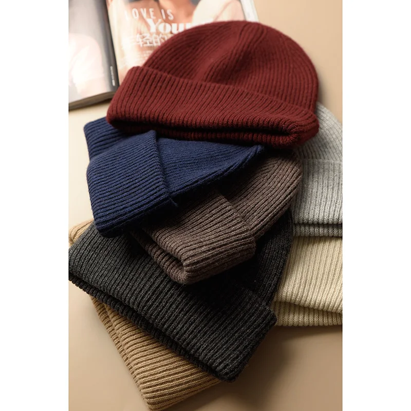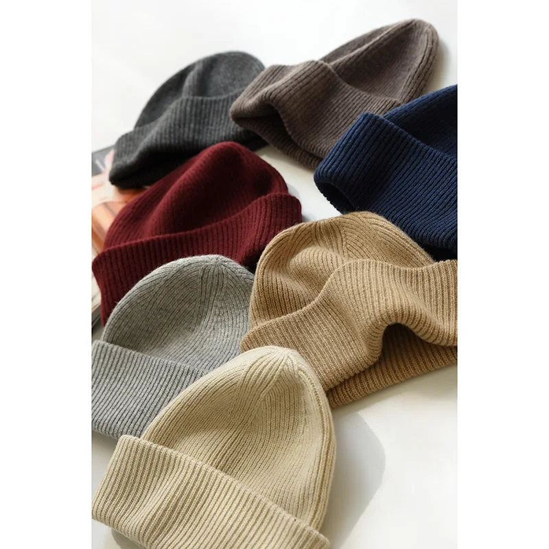 Unisex Large Size Winter Real Wool Knitted Beanies for Women Fashion Solid Warm Cashmere Wool Skullies Beanies Female Thick Hats
