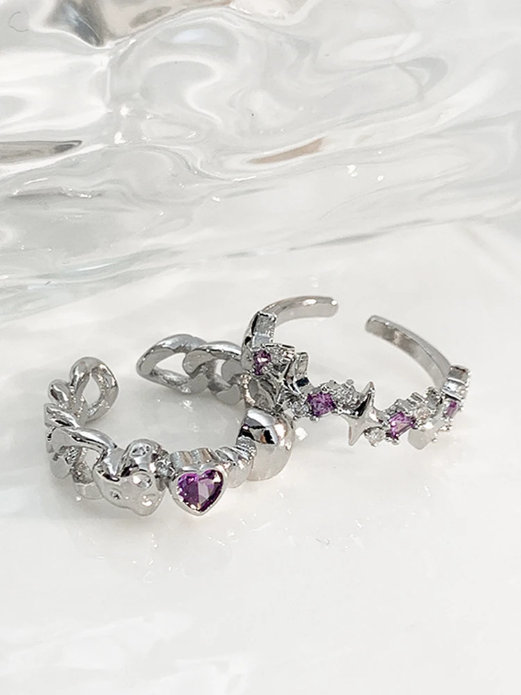 Vintage Crystal Star Adjustable Ring Fashion Shiny Irregular Purple Rhinestone Couple Rings For Women Men Lover Y2k Jewelry
