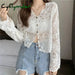 Vintage Lace Blouse Women Sheer Long Sleeve Sunscreen Shirt Cardigan Vacation Korean Elegant Casual Sun Protection Top
