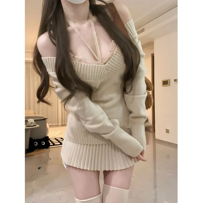 Winter Japanese Kawaii Knitted New 3 Piece Set Women Solidpullover Sweater +vest+pleated Skirt Female Sweet Designer Suit