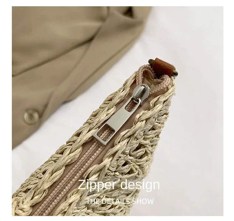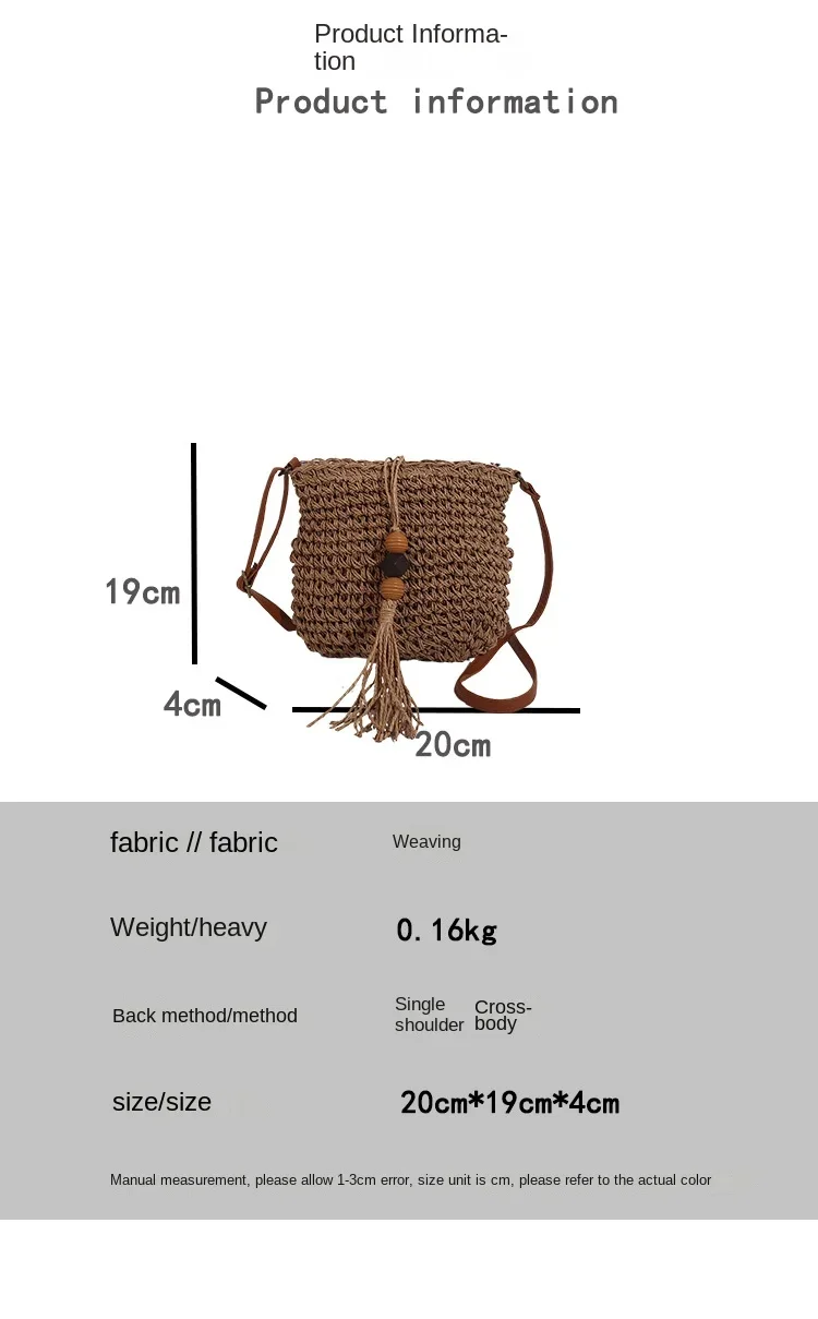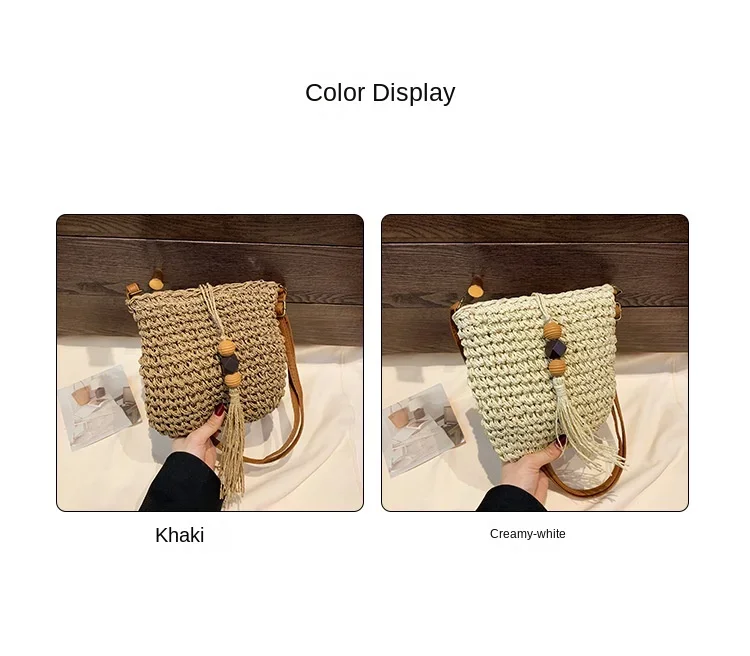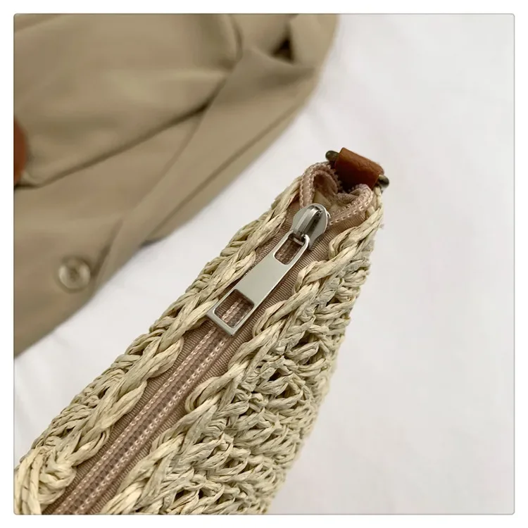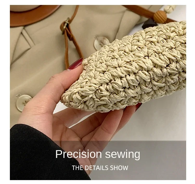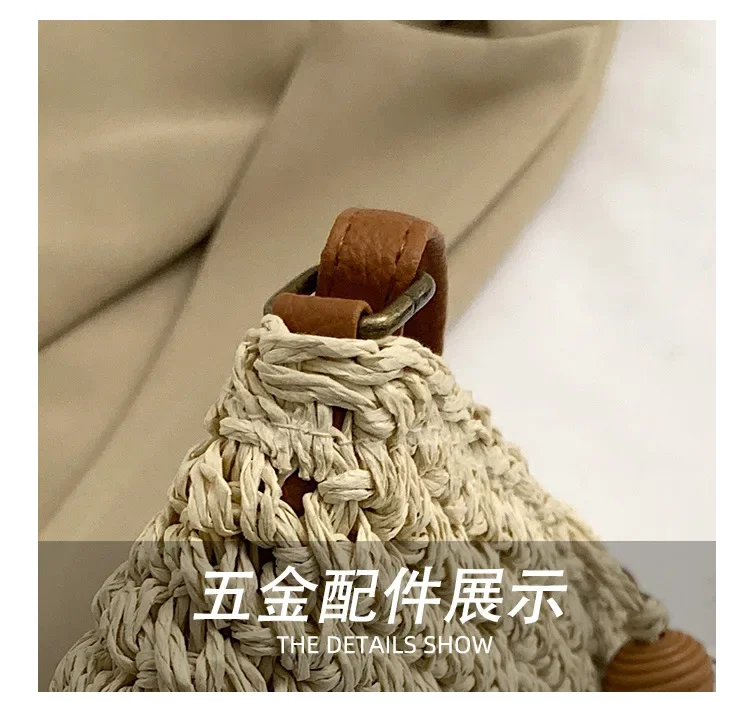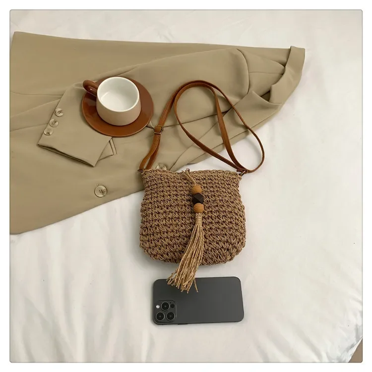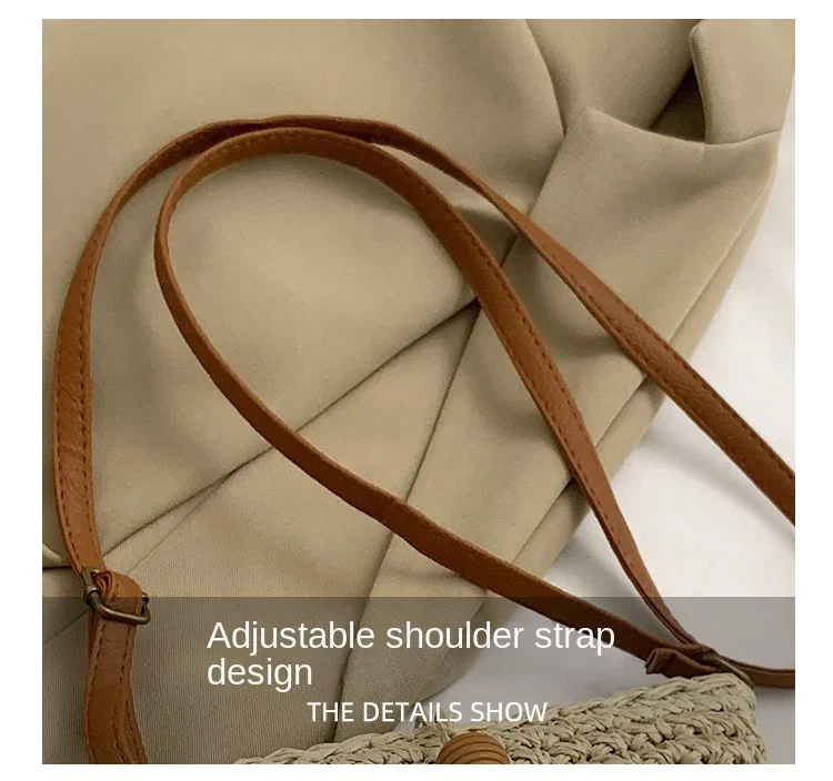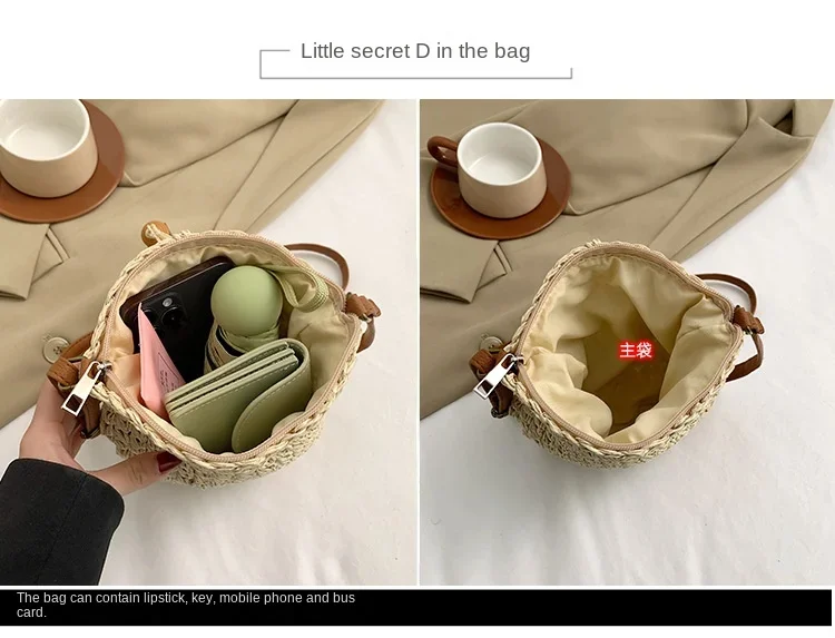 Women Handmade Straw Woven Small Bucket Bag Fashion Crossbody Shoulder Bag Ladies Simple Design Handbag Summer Travel Beach Bag