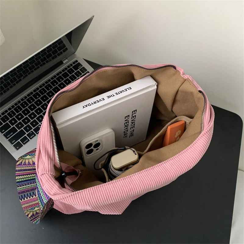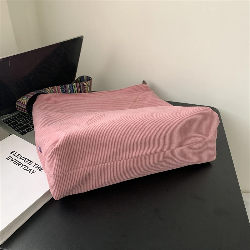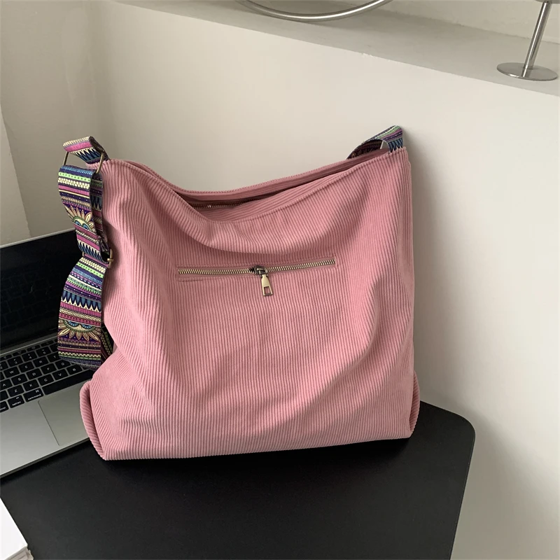 Women Luxury Corduroy Shoulder Bag Large Handbag Big Casual Tote Canvas Lining Solid Cloth Purse Zipper Crossbody Messenger Bags