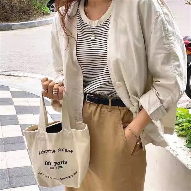 Women Mini Tote Handbag Korean Style Letter Print Canvas Shopping Bag for Boutique Female Letter Lunch Bag Tote Pouch