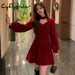 Women Sequins Long Sleeve Wram Vintage Dress Red Velvet Elegant Party Mini Dress Ladies Casual Korean A-line Dress New Year