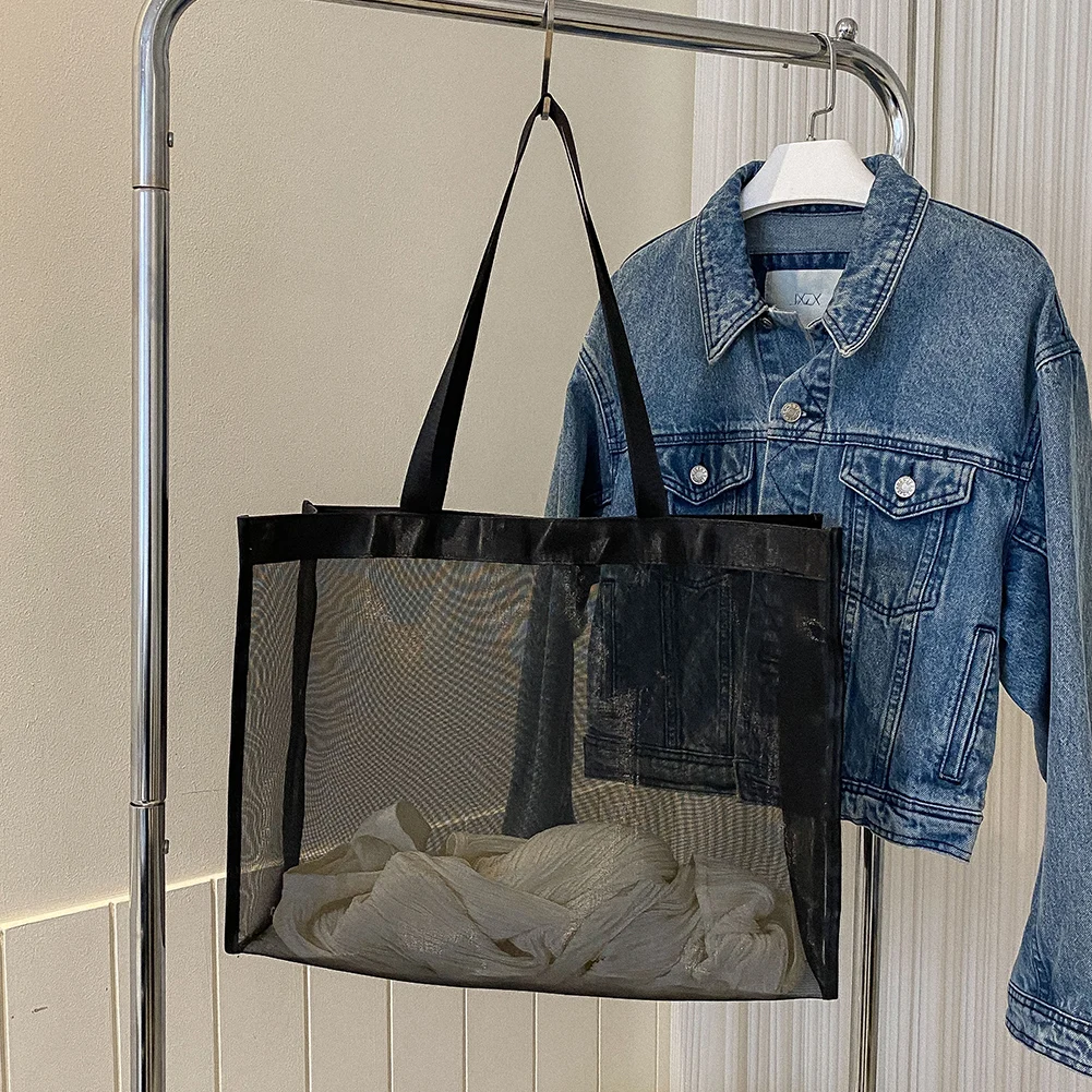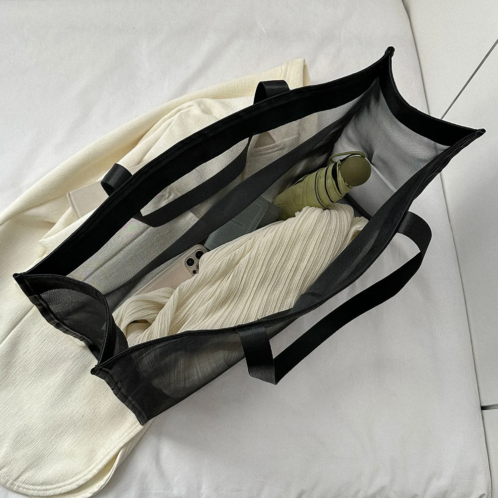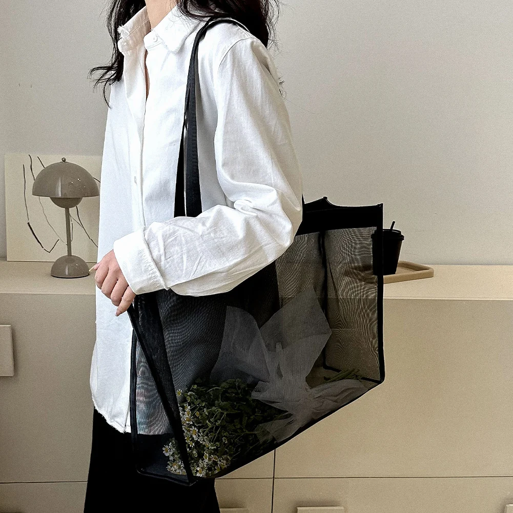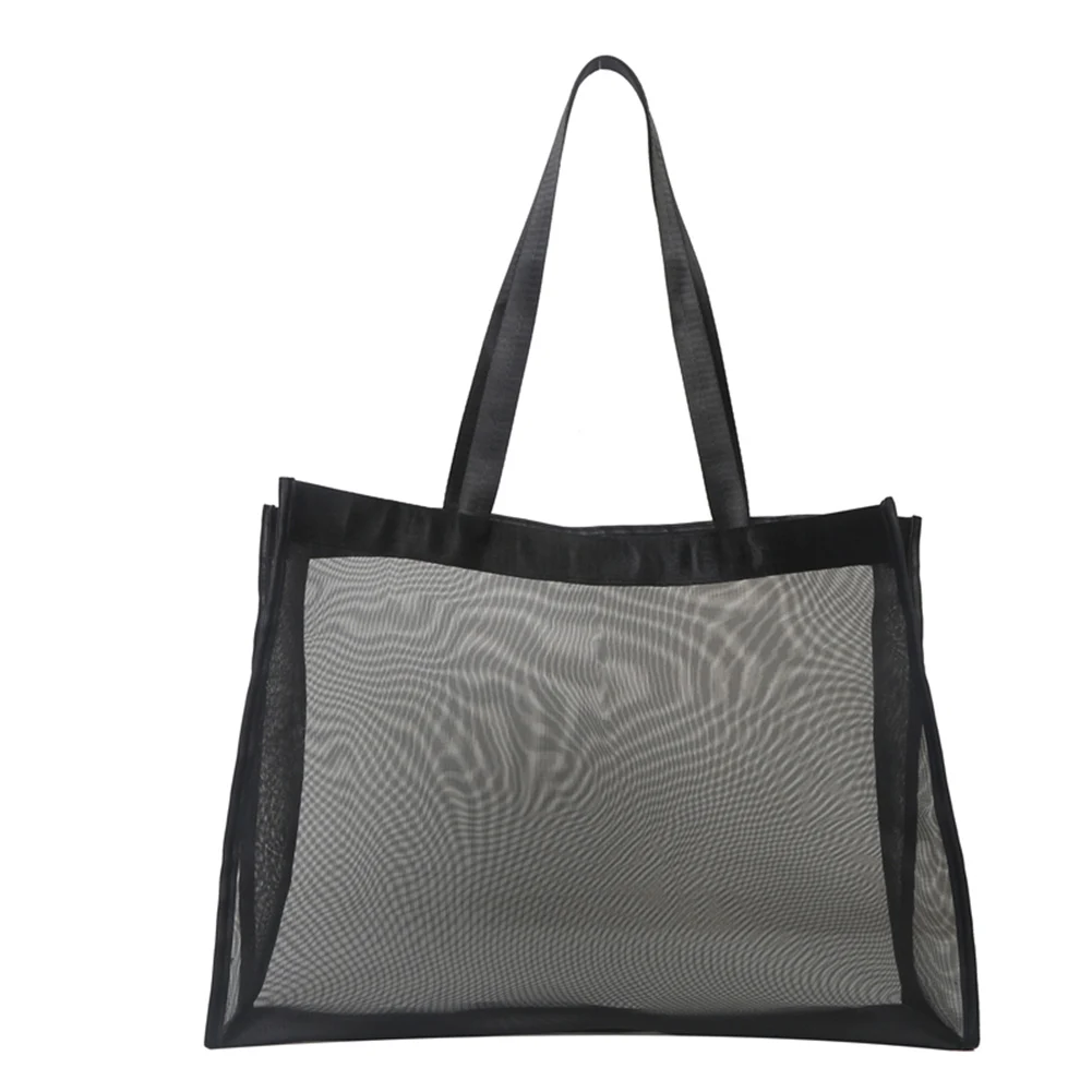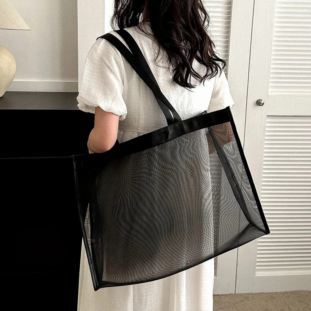 Women's Bag Large Capacity Mesh Shopping Bag Transparent Waterproof Shoulder Bag Travel Tote Bags Handbag Summer Vacation