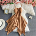Women's Beach Travel Clothing Summer Sexy Solid Color Long Sling Dress Lady Casual Party V-Neck Skirts Female Dresses