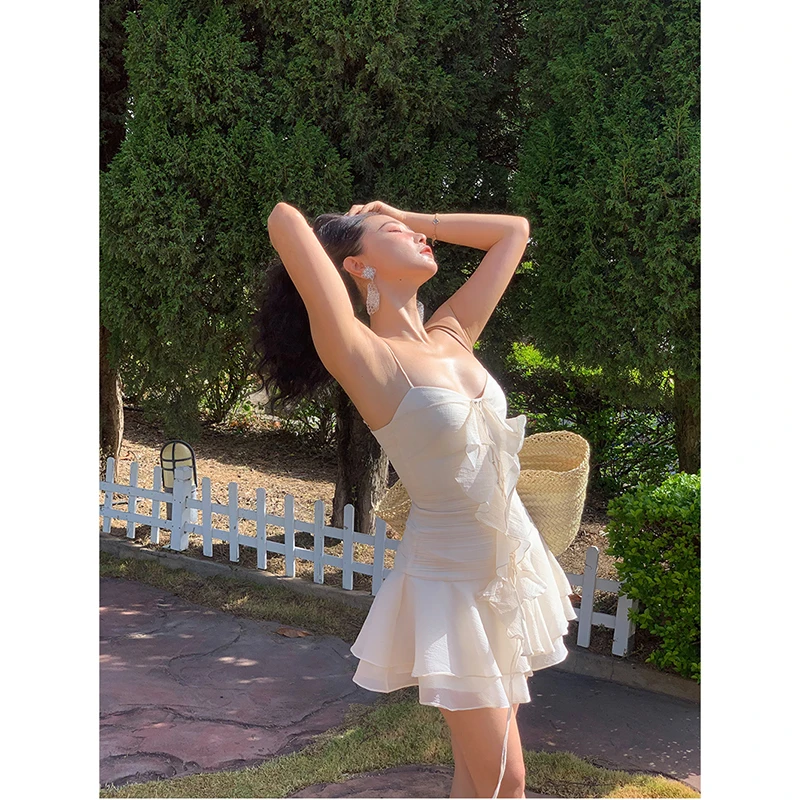 Y2k Camisole Backless Mini Dress Woman Beach Elegant Short Party Dress Casual Vintage One Piece Dress Korea Fashion Summer