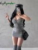 Y2K Retro Lace Patchwork Spaghetti Strap Black Bodycon Dress Mini Fashion Aesthetic Bow Club Party Sexy Dresses for Women