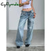 Y2k Vintage High Waisted Blue Washed and Distressed Jeans Fashion Harajuku Baggy Straight Pants Casual Classic Trousers Autumn